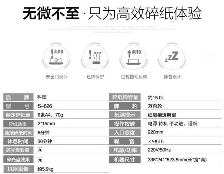 商品名称:科密碎纸机 S-626 17L单独碎纸 灰色
