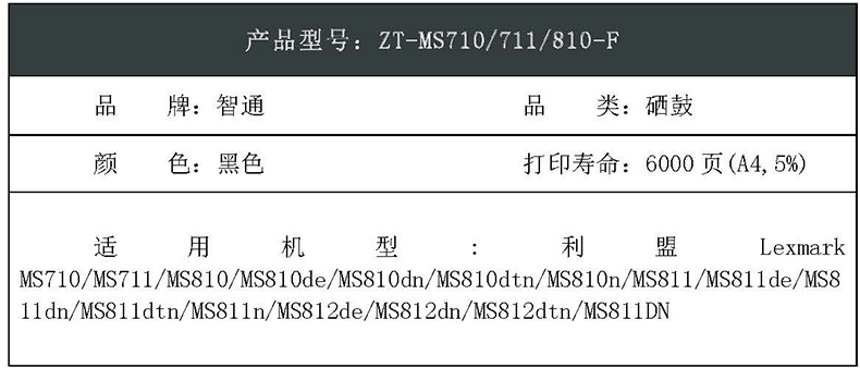 商品名称:智通ZT LM-MS710/711/810/811黑粉(带芯片)-6K-PLUS版