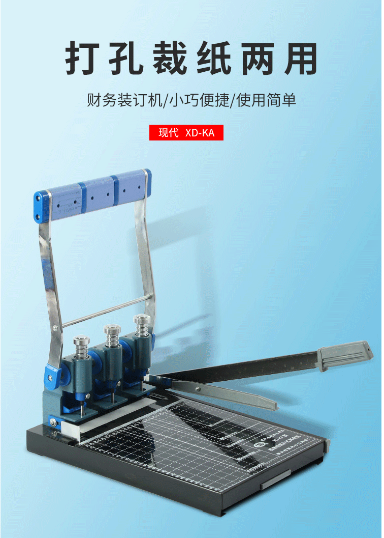 现代XD-KA 三孔打孔机 打孔器 切纸打孔两用装订机 刀头标配5MM
