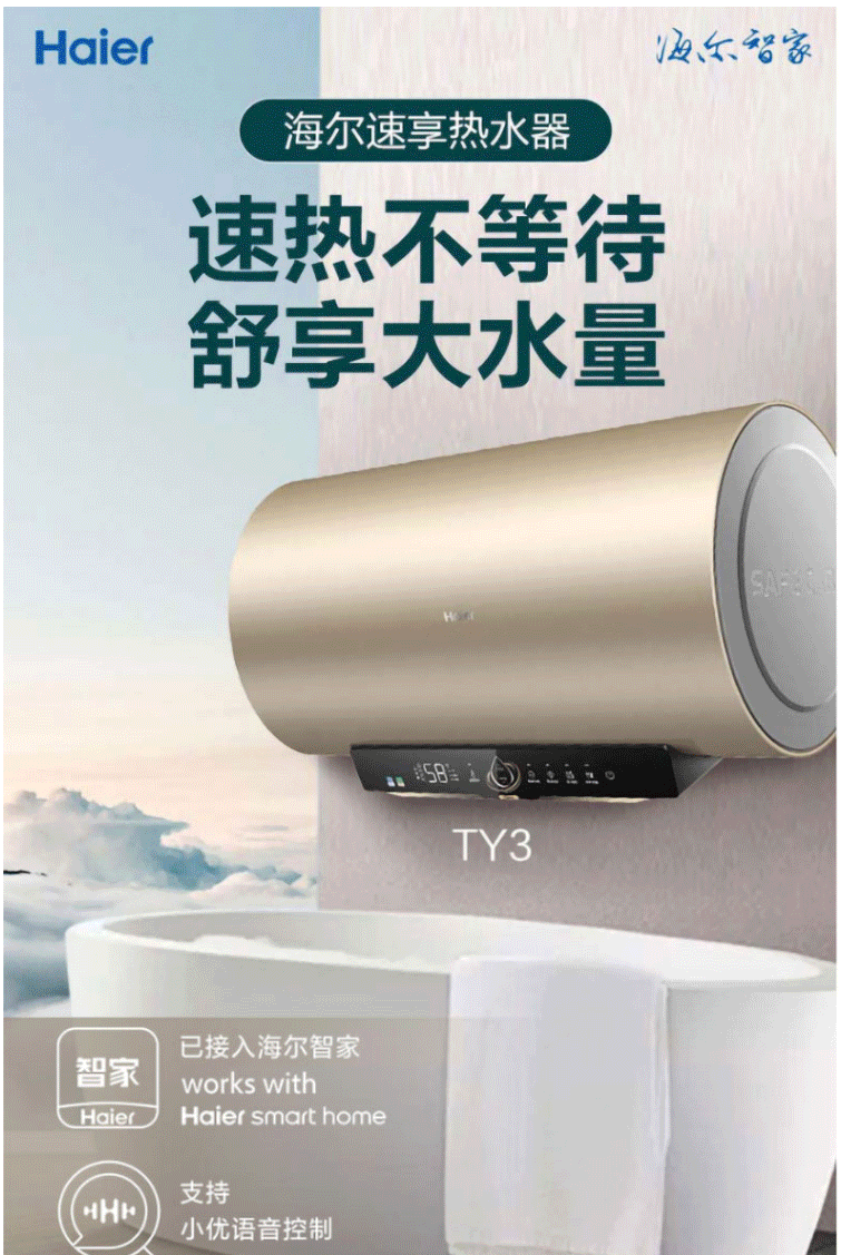海尔(Haier)电热水器 80L 3D速热WIFI智控家用热水器 ES80H-TY3(5)U1金色