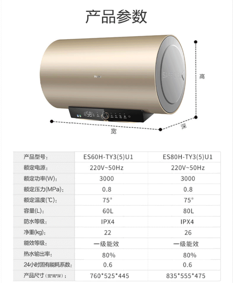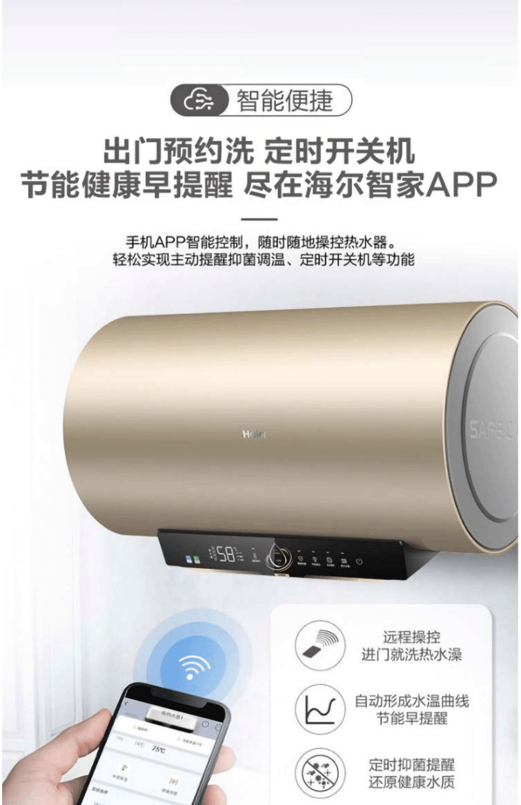 商品名称:海尔(Haier)电热水器 80L 3D速热WIFI智控家用热水器 ES80H-TY3(5)U1金色