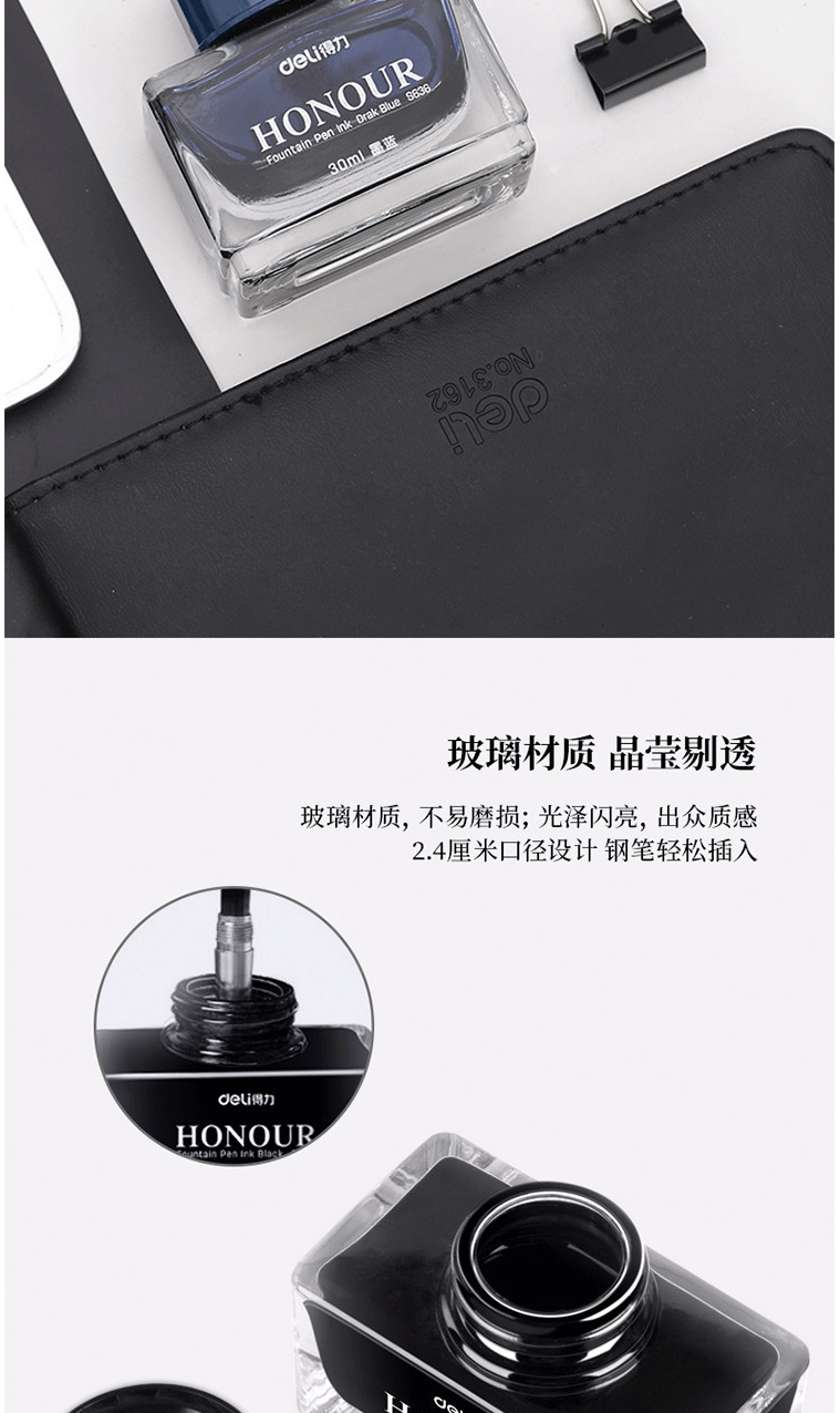 得力(deli)S636 30ml非碳素钢笔墨水 墨蓝色