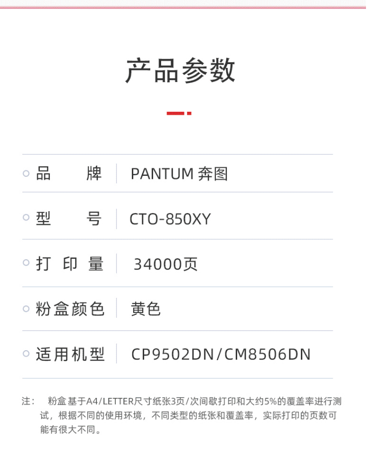 商品名称:奔图(PANTUM)CTO-850XY黄色粉盒 适用奔图CTO-850/CM8505DN/CM9505DN/CP9502DN/CM8506DN打印机墨盒