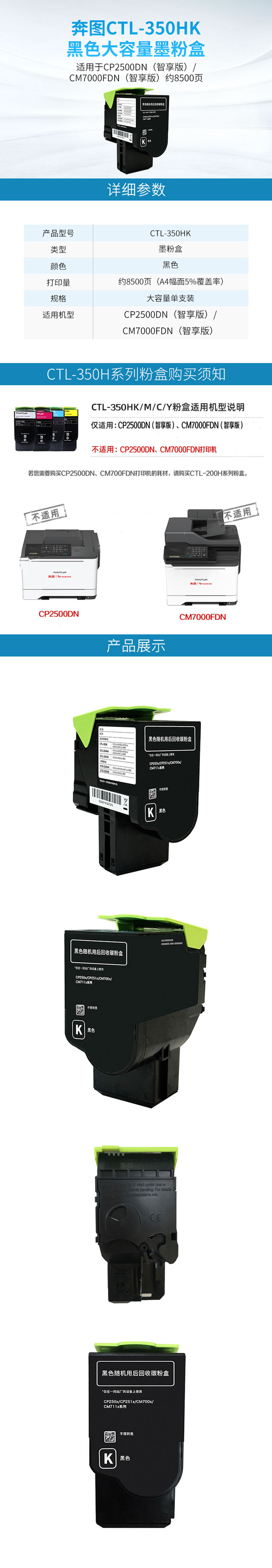 商品名称:奔图(PANTUM)CTL-350HK 黑色粉盒 适用于(CP2510DN/CM7115DN/CP2500DN智享版/CM7000FDN智享版)