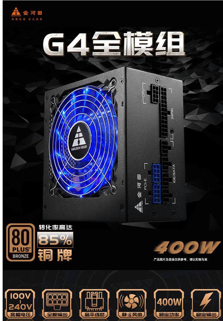 金河田(Golden field)额定400W G4全模组电脑电源