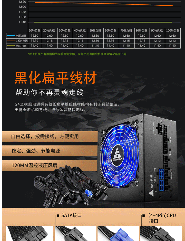 商品名称:金河田(Golden field)额定400W G4全模组电脑电源