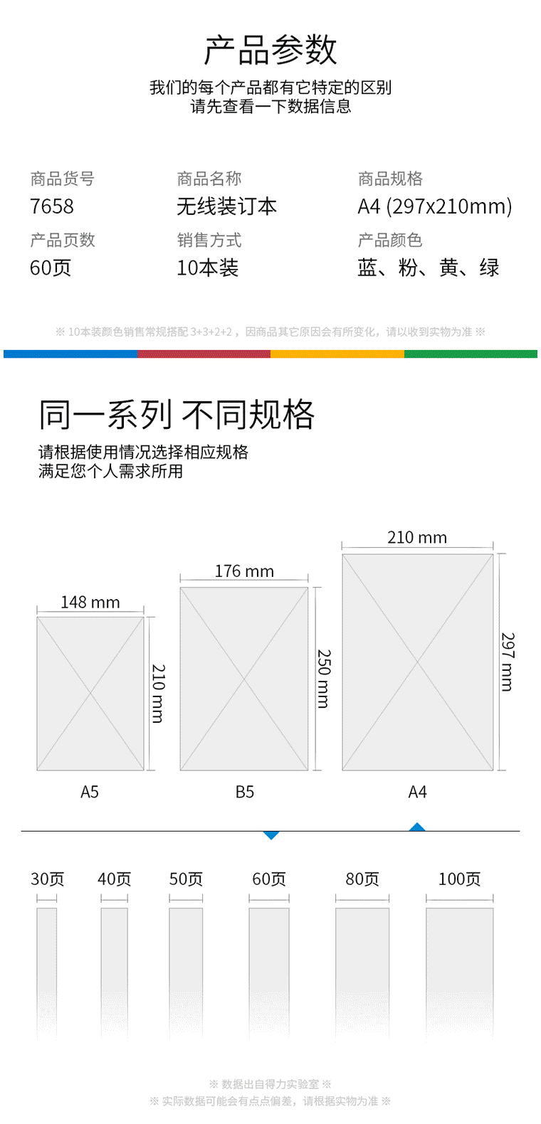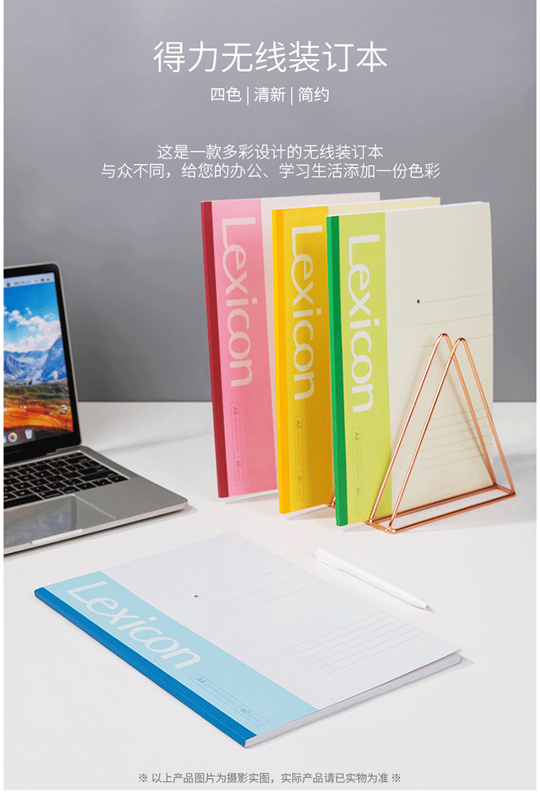 商品名称:得力7658办公无线装订本(混) A4-60张(本)