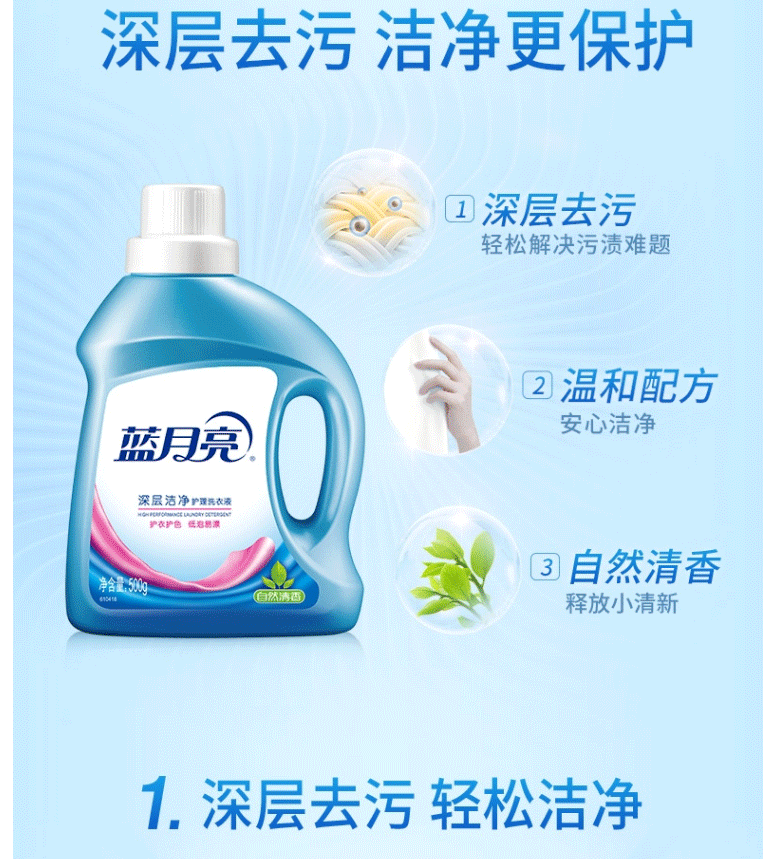 商品名称:蓝月亮 深层洁净护理洗衣液(自然清香)500g/瓶