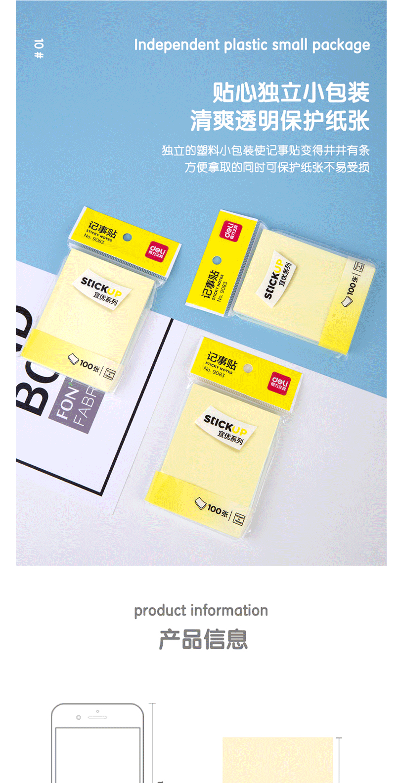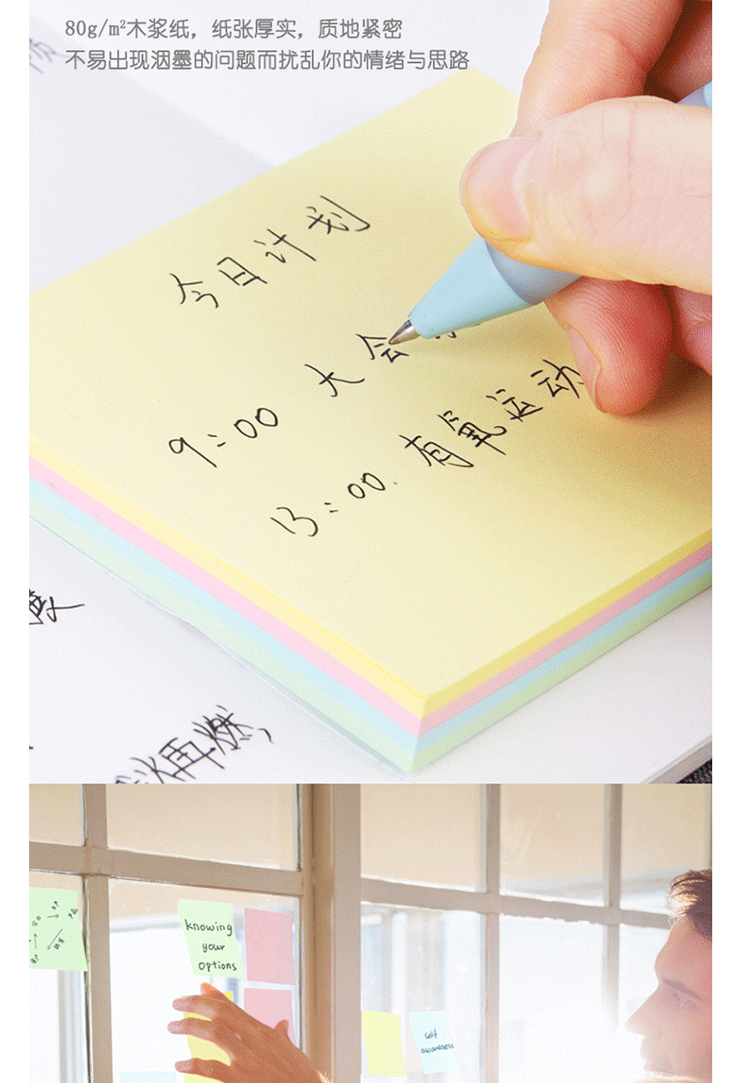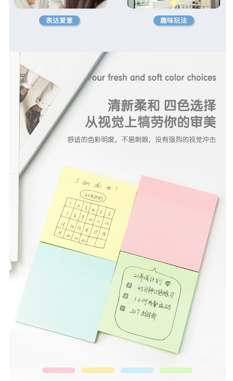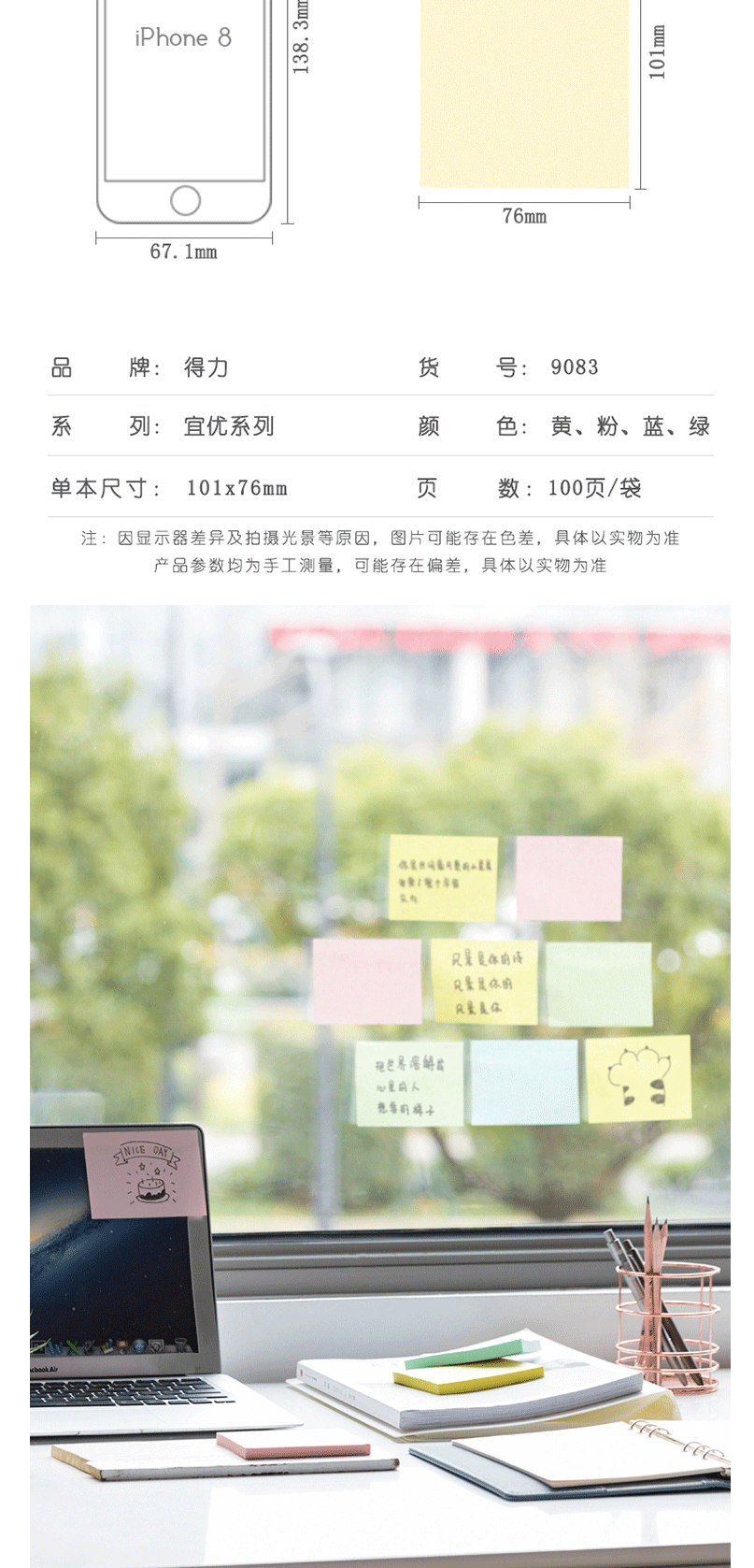 商品名称:得力(deli)100张4色大号便利贴便签纸 76*101mm便签本/记事贴 9083