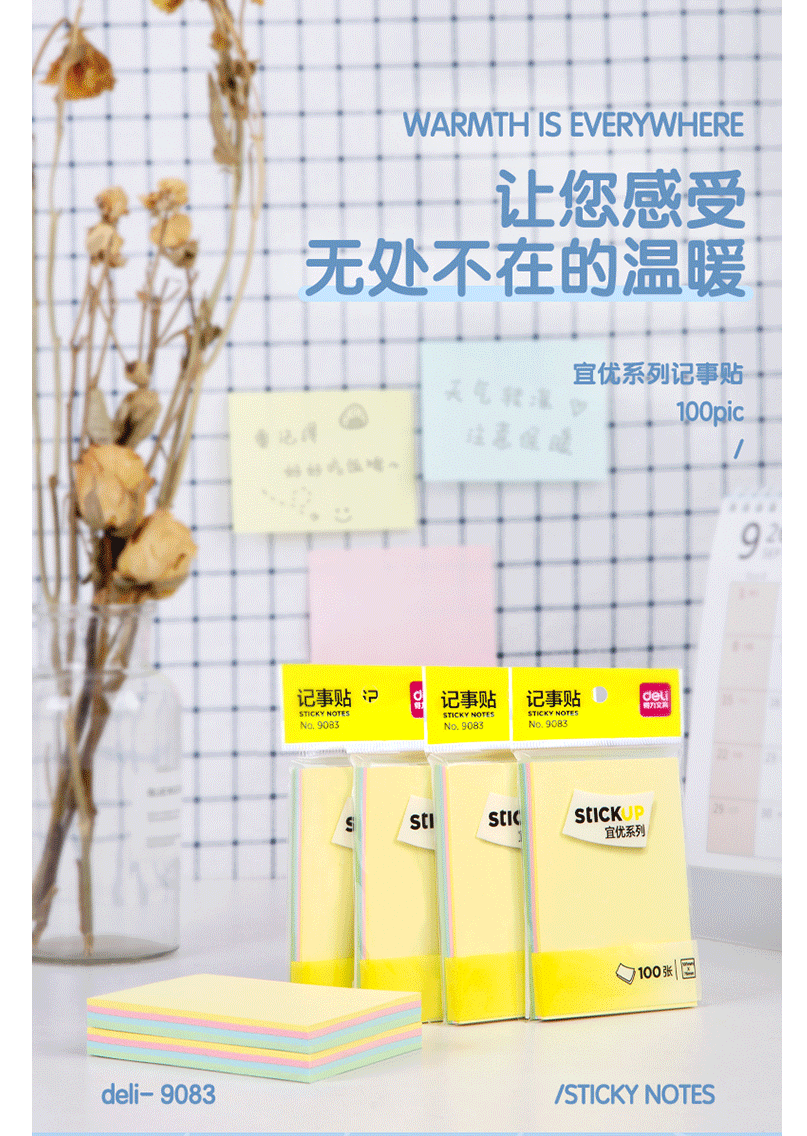 得力(deli)100张4色大号便利贴便签纸 76*101mm便签本/记事贴 9083