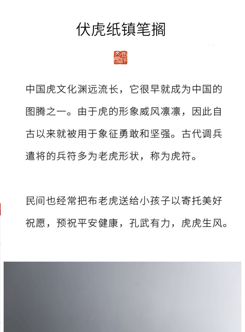 商品名称:西泠印社 陶瓷伏虎纸镇 笔山 笔架 笔搁