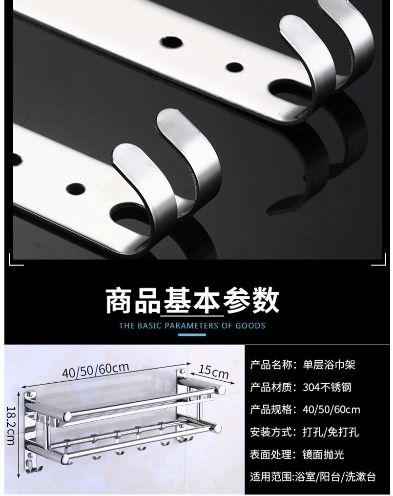 商品名称:卫生间置物架 免打孔毛巾架 【304材质免打孔】 60cm