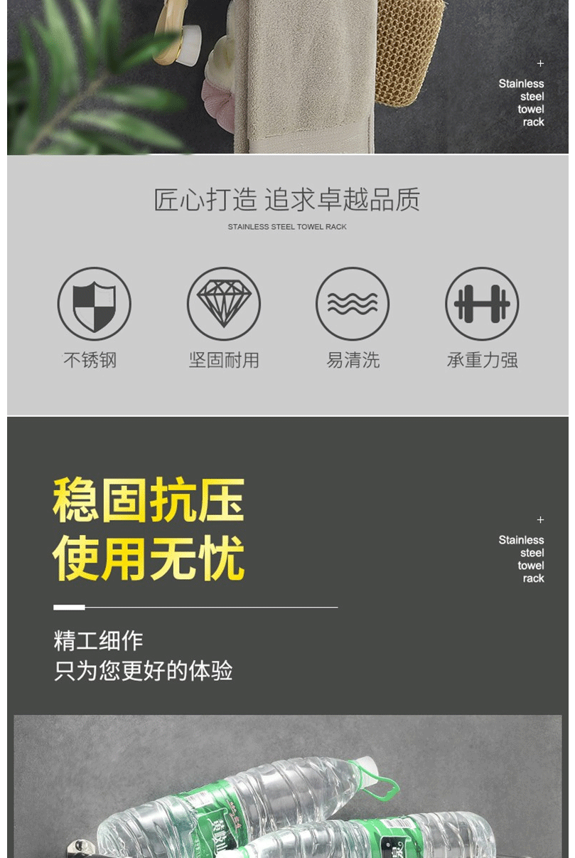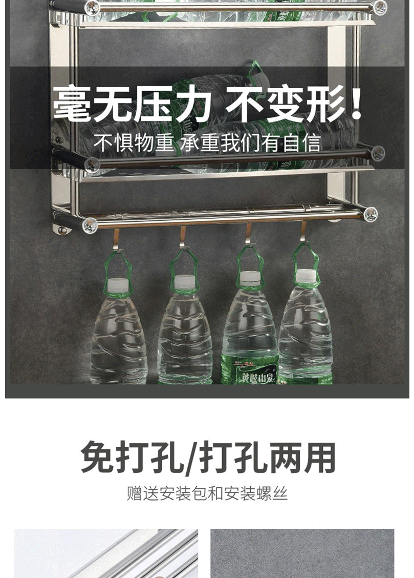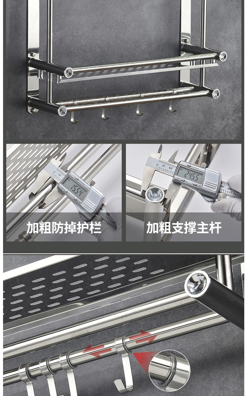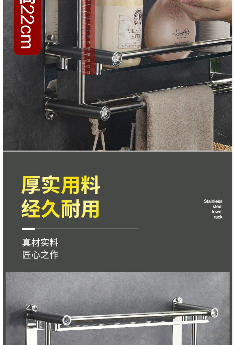 商品名称:卫生间置物架 毛巾架 不锈钢免打孔浴巾架 卫浴置物架双层50cm(免打孔/打孔两用)