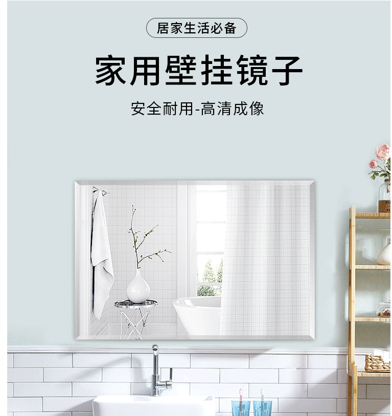 商品名称:浴室镜子免打孔 卫生间洗漱台镜子 化妆镜 直角40*60cm