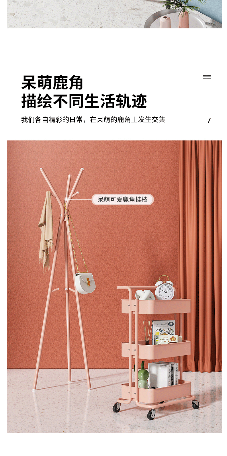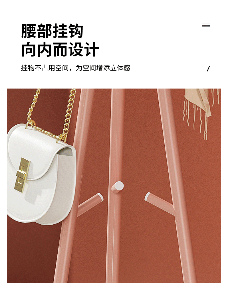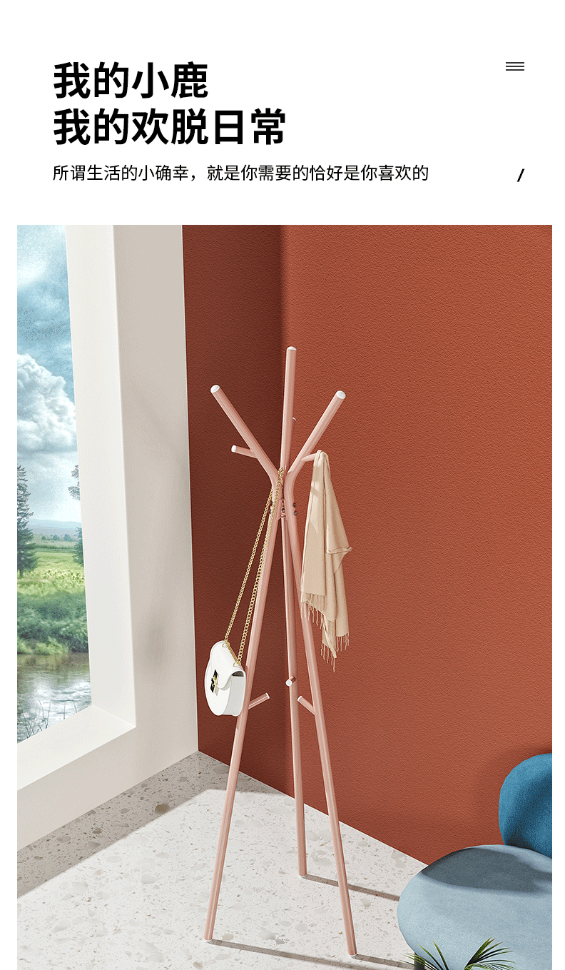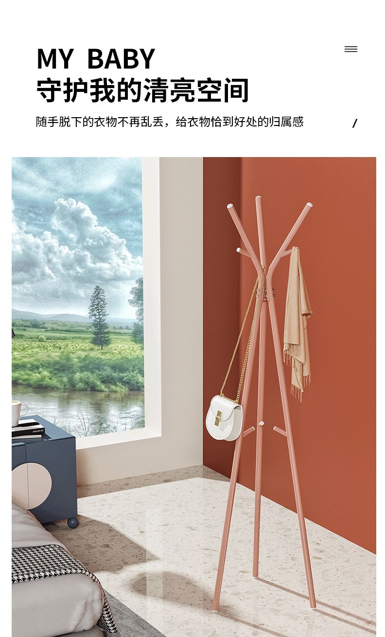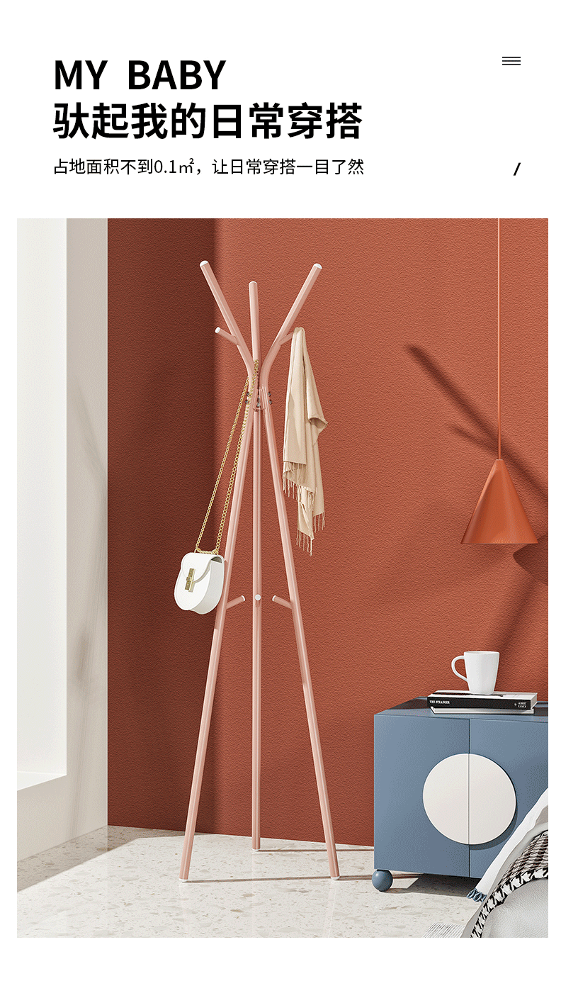商品名称:北欧风落地衣帽架卧室挂衣服架 置物架简易挂包架 YCC5583(白/粉/绿颜色随机)