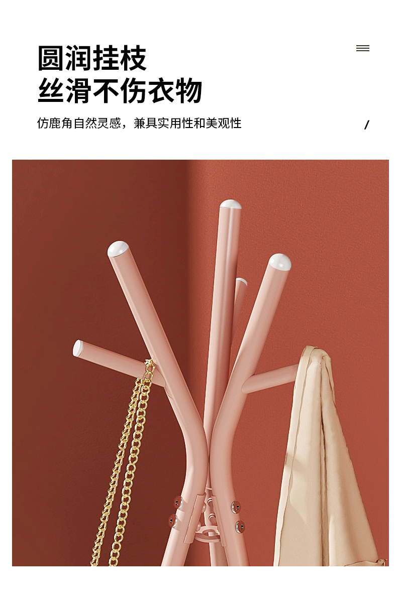 北欧风落地衣帽架卧室挂衣服架 置物架简易挂包架 YCC5583(白/粉/绿颜色随机)