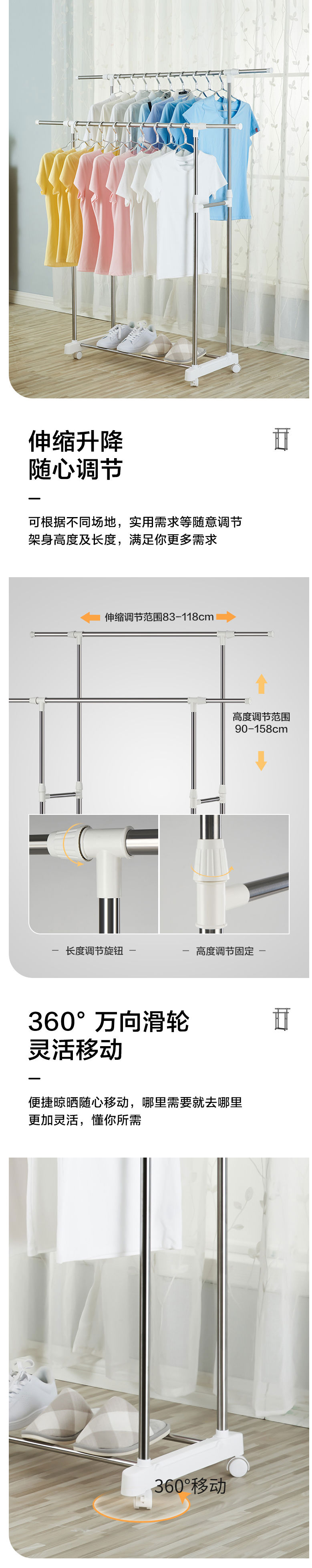 高低杠晾衣架 不锈钢落地晾衣架 阳台伸缩晾衣架 晒衣架 挂衣架 晾晒架 晾衣杆