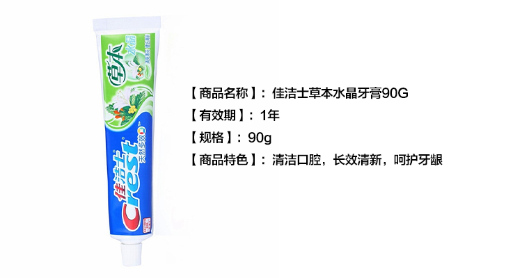 商品名称:佳洁士(Crest)草本水晶清爽薄荷香型牙膏 90g/管