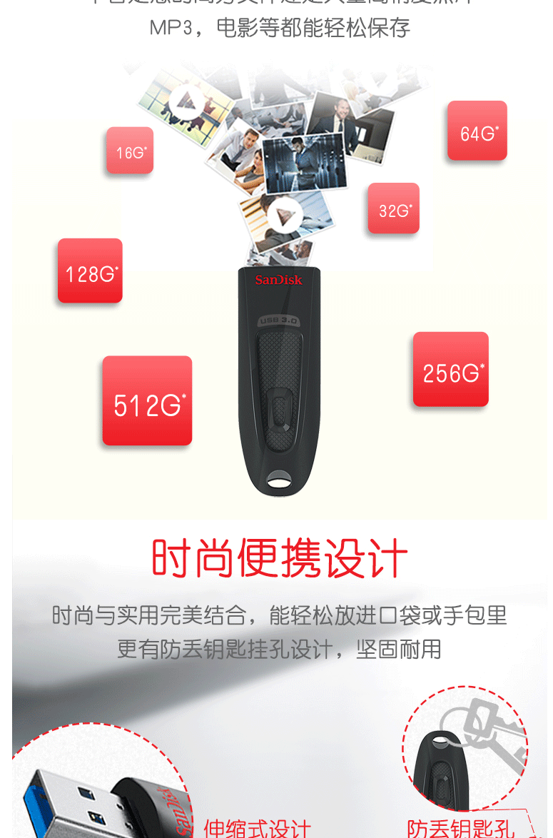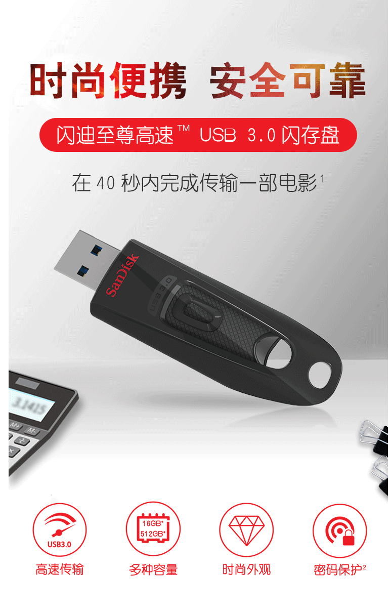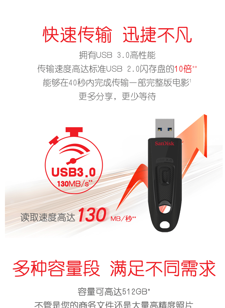 商品名称:闪迪(SanDisk)32GB USB3.0 U盘 CZ48 至尊高速 黑色