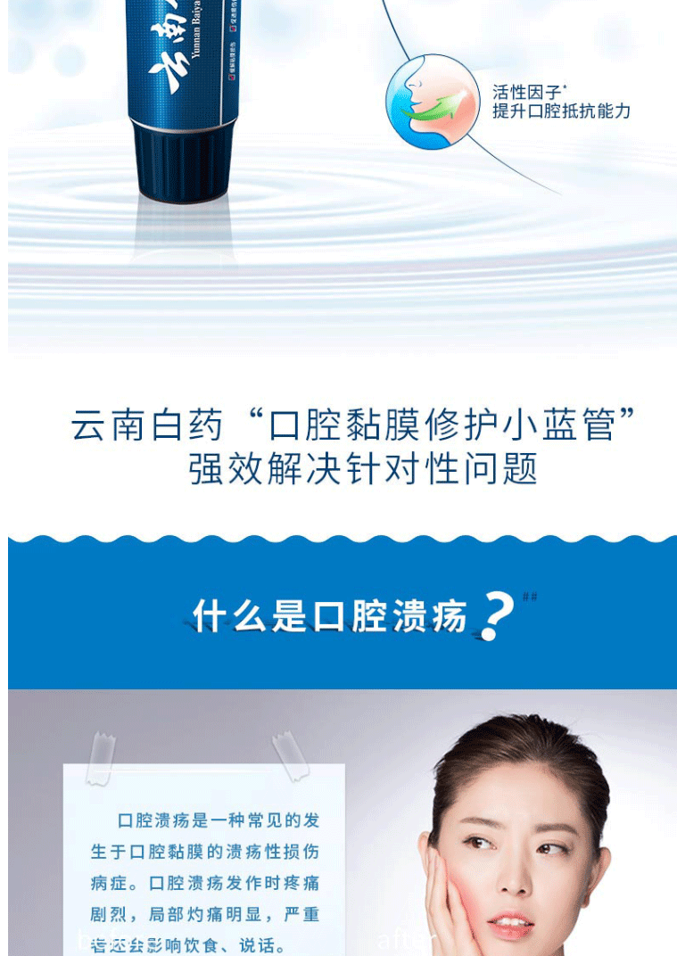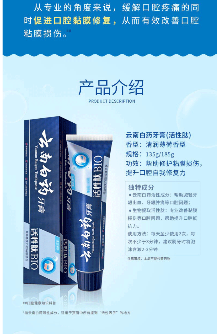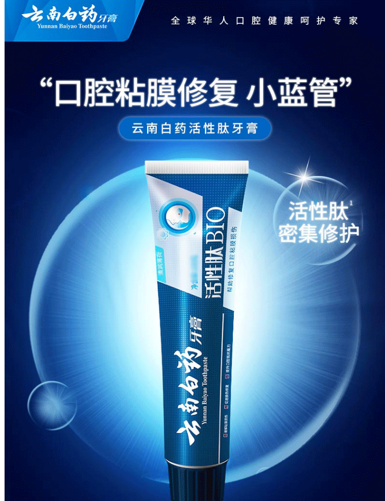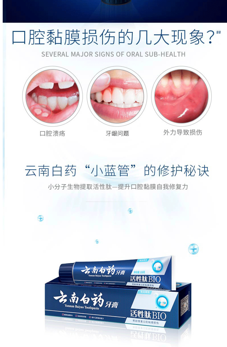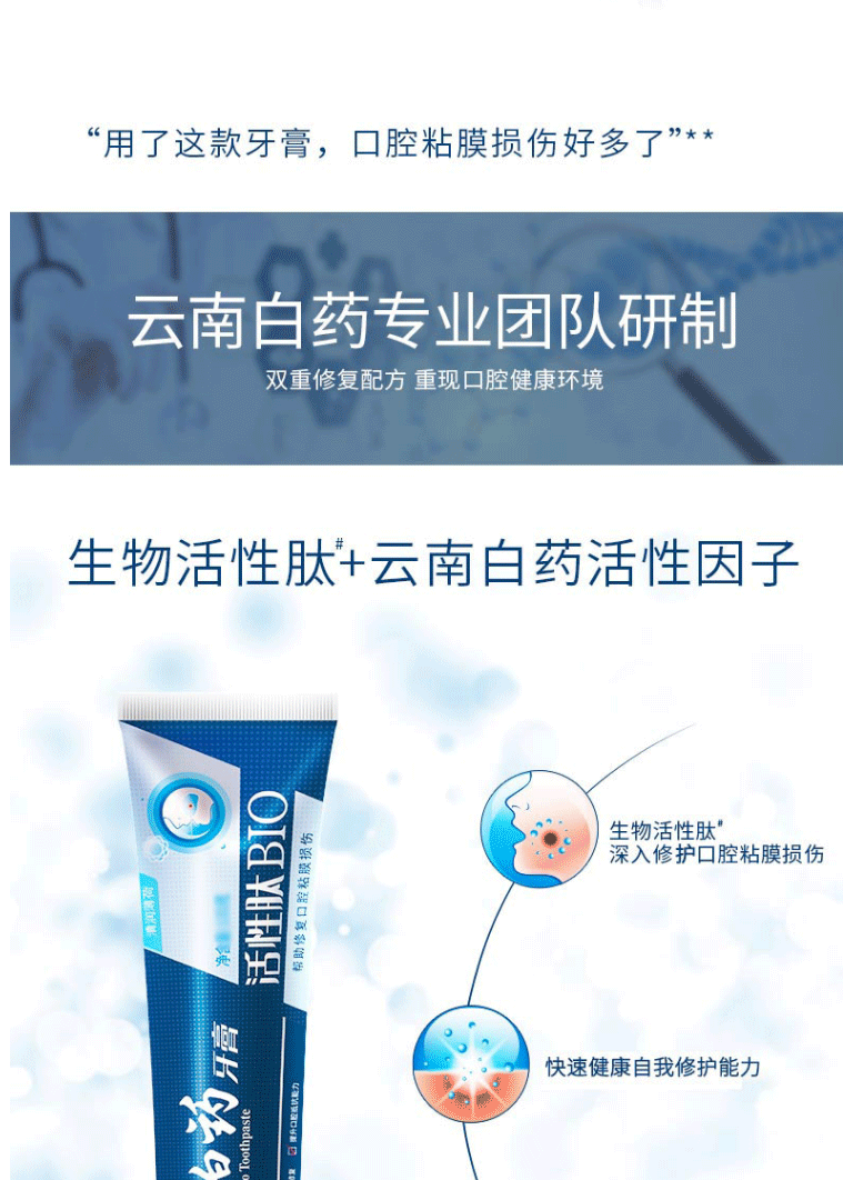 商品名称:云南白药牙膏 活性肽修复口腔粘膜 清新口气高端呵护 135g