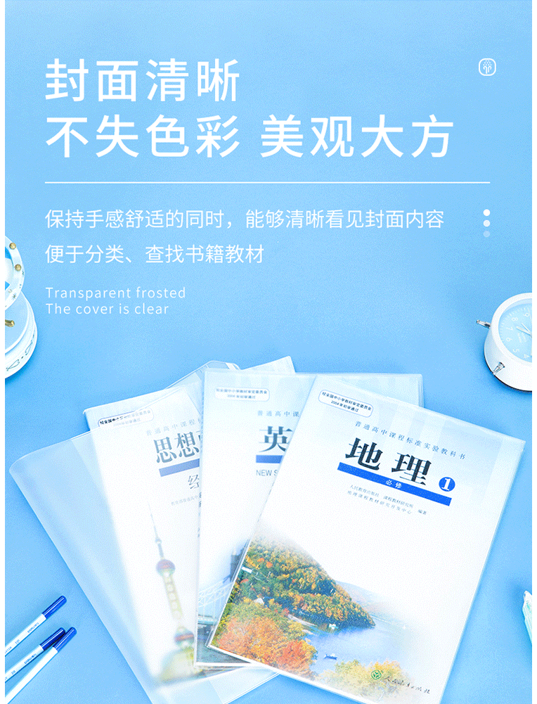 商品名称:得力(deli)A4柔软加厚透明磨砂书套70584 柔韧耐磨包书皮 包书膜 5张/包