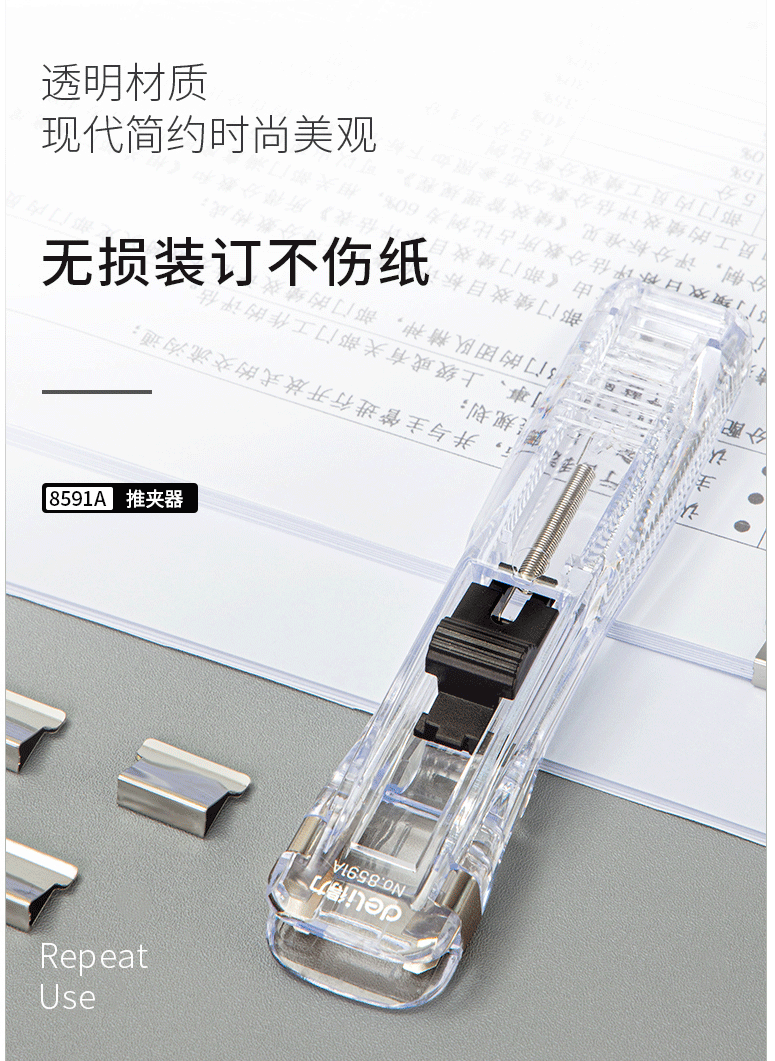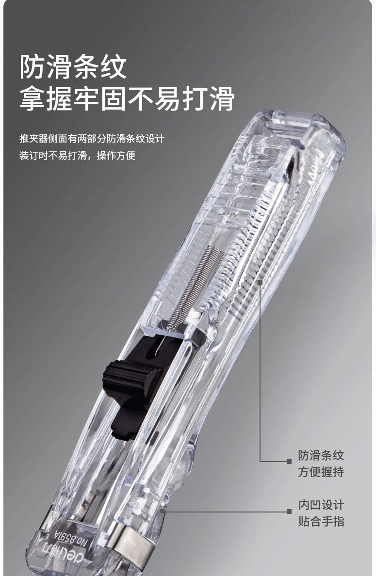 商品名称:得力(deli)办公装订推夹器 透明白 8591A