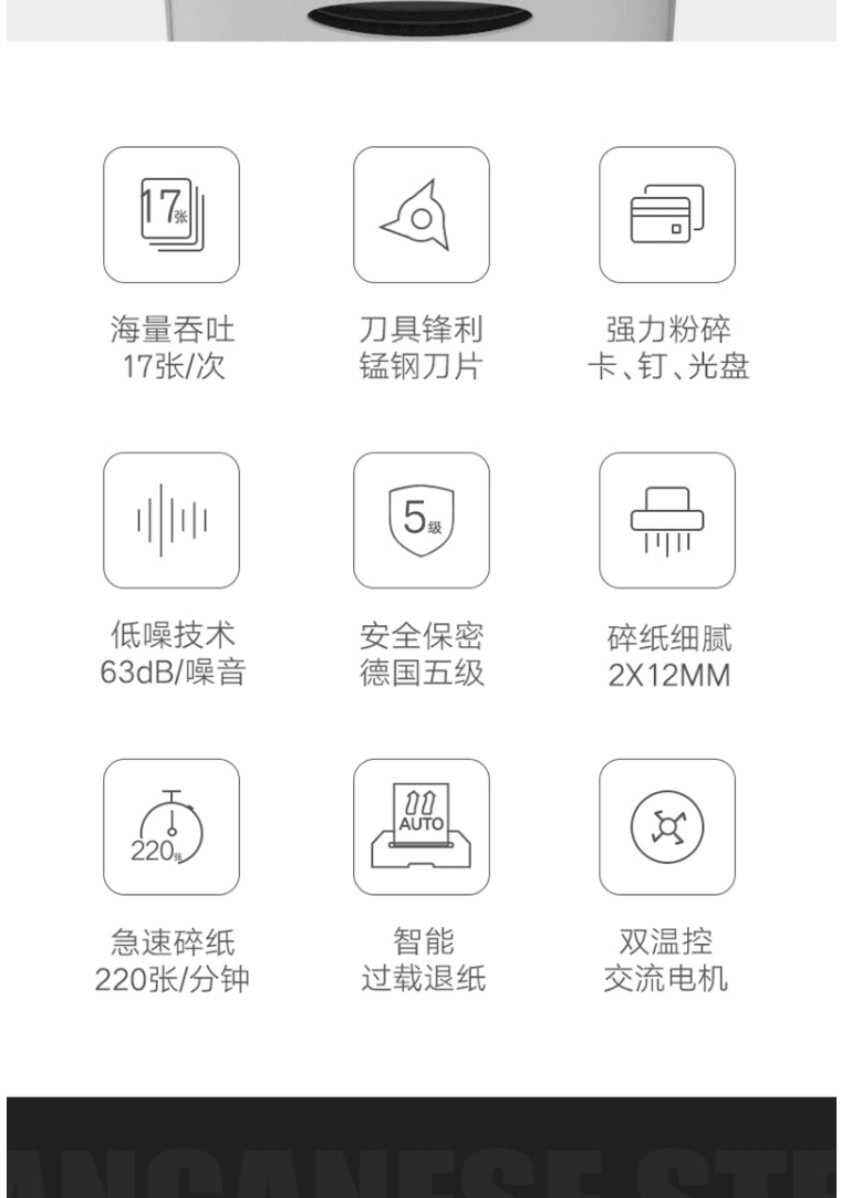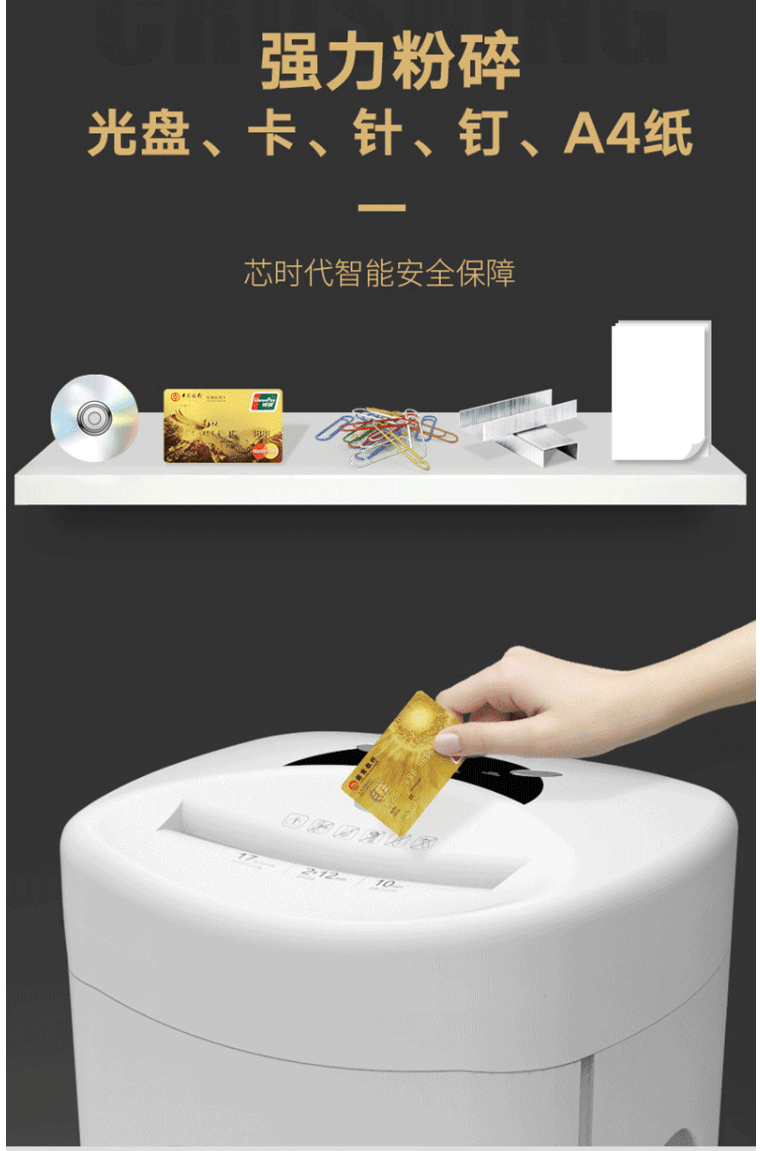 商品名称:三木(SUNWOOD)5级保密办公商用碎纸机 MSD9511(单次17张 持续10分钟 34L 可碎纸,光盘,卡,回形针、订书针)