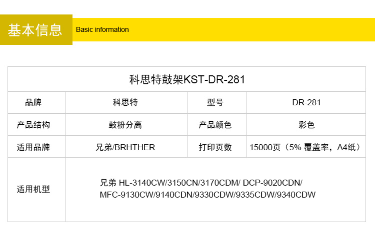 科思特DR281/285鼓架 适用兄弟 HL3150CN DCP9020 MFC9340 专业版