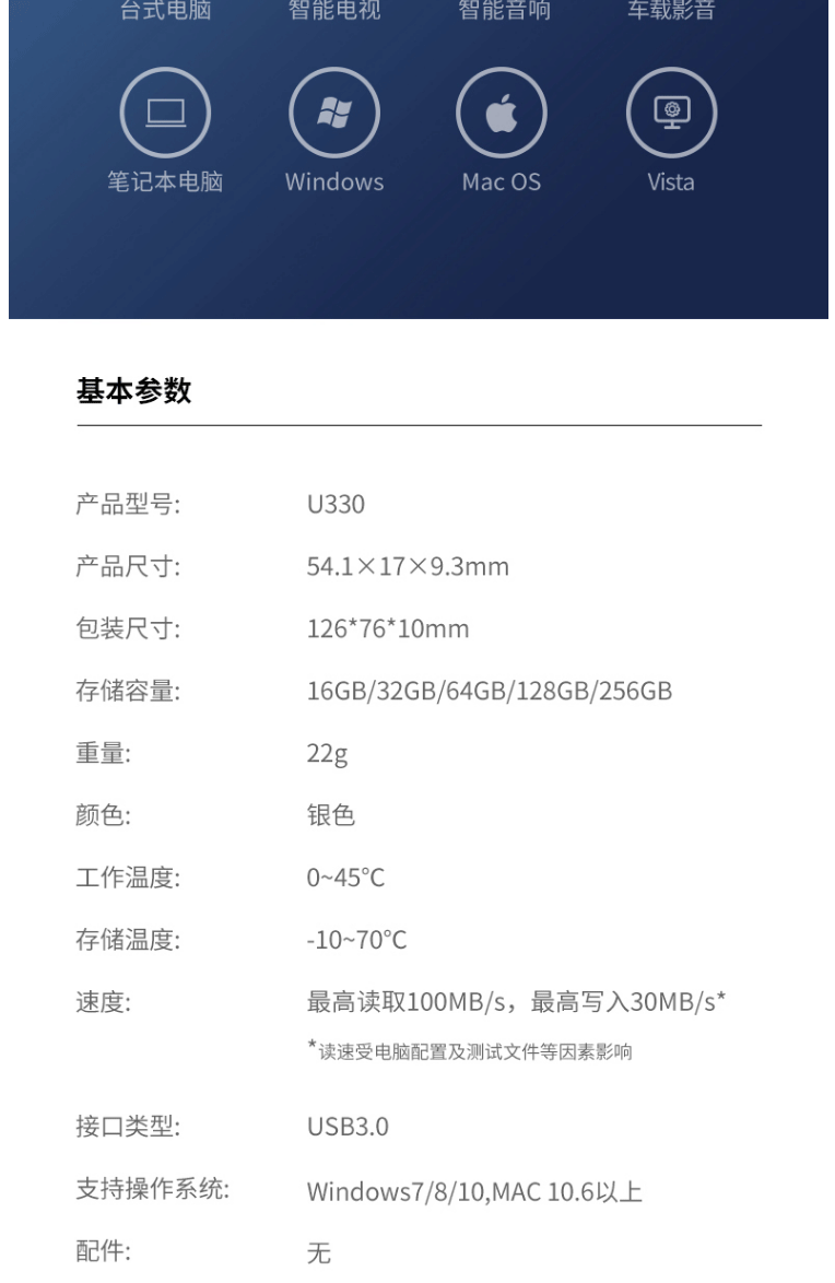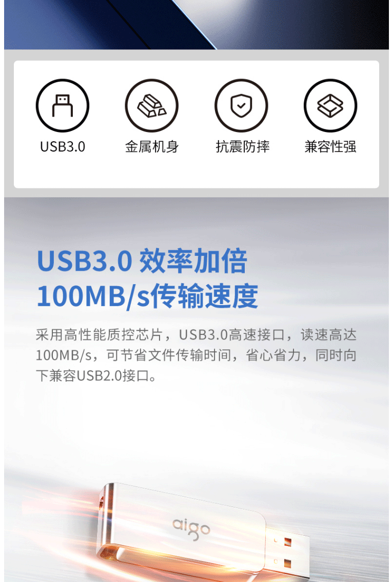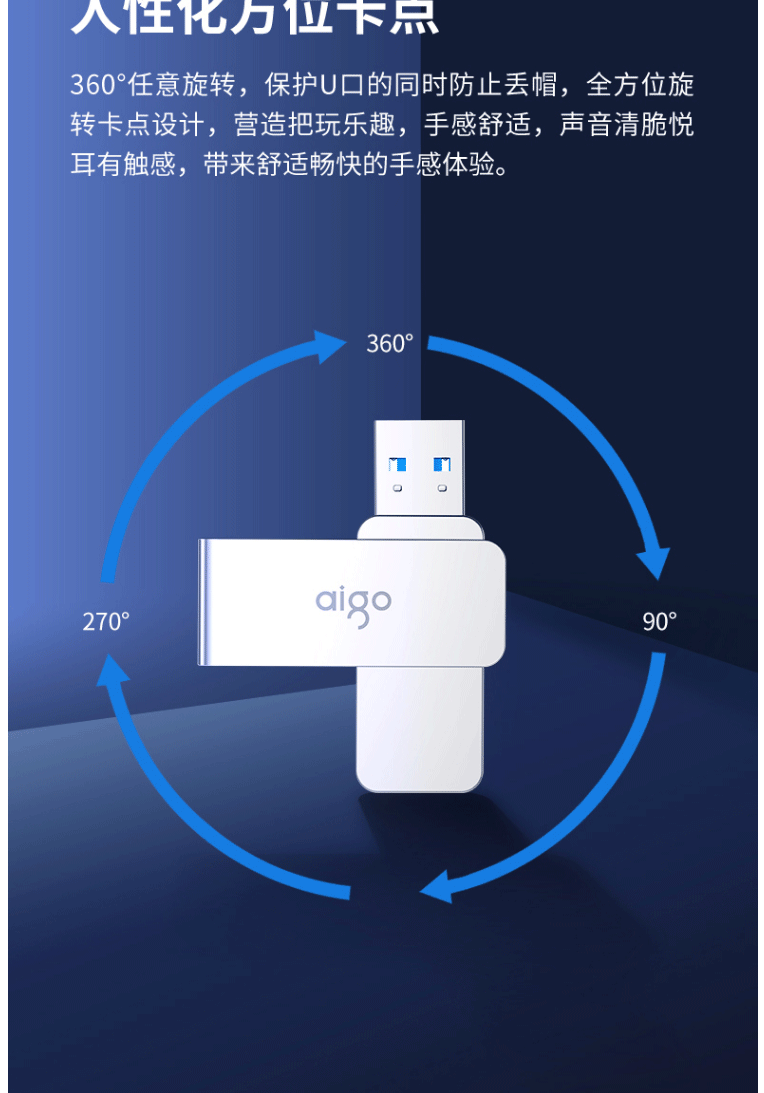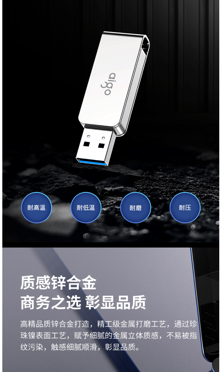 商品名称:爱国者(aigo)64GB USB3.0 U盘 U330金属旋转系列 银色