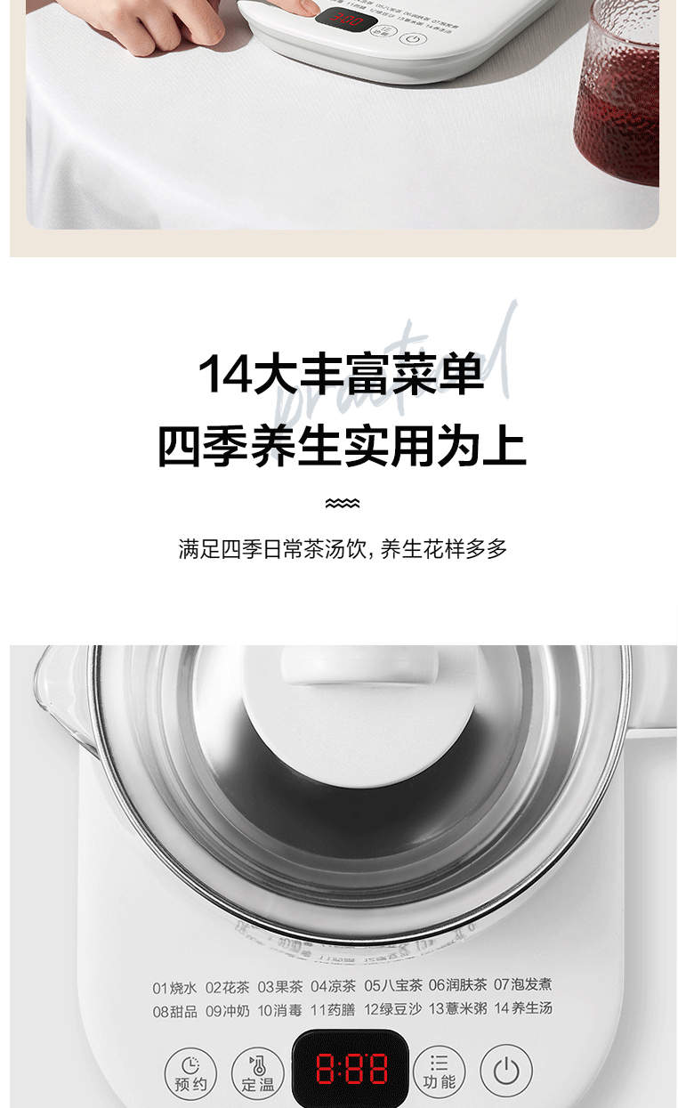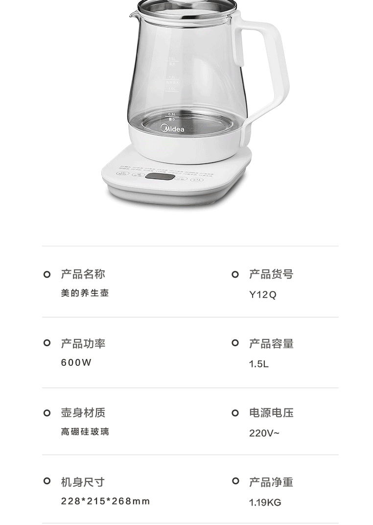 商品名称:美的(Midea)养生壶 1.5L 煮茶器煮茶壶 电水壶 智能预约养生壶 MK-Y12Q
