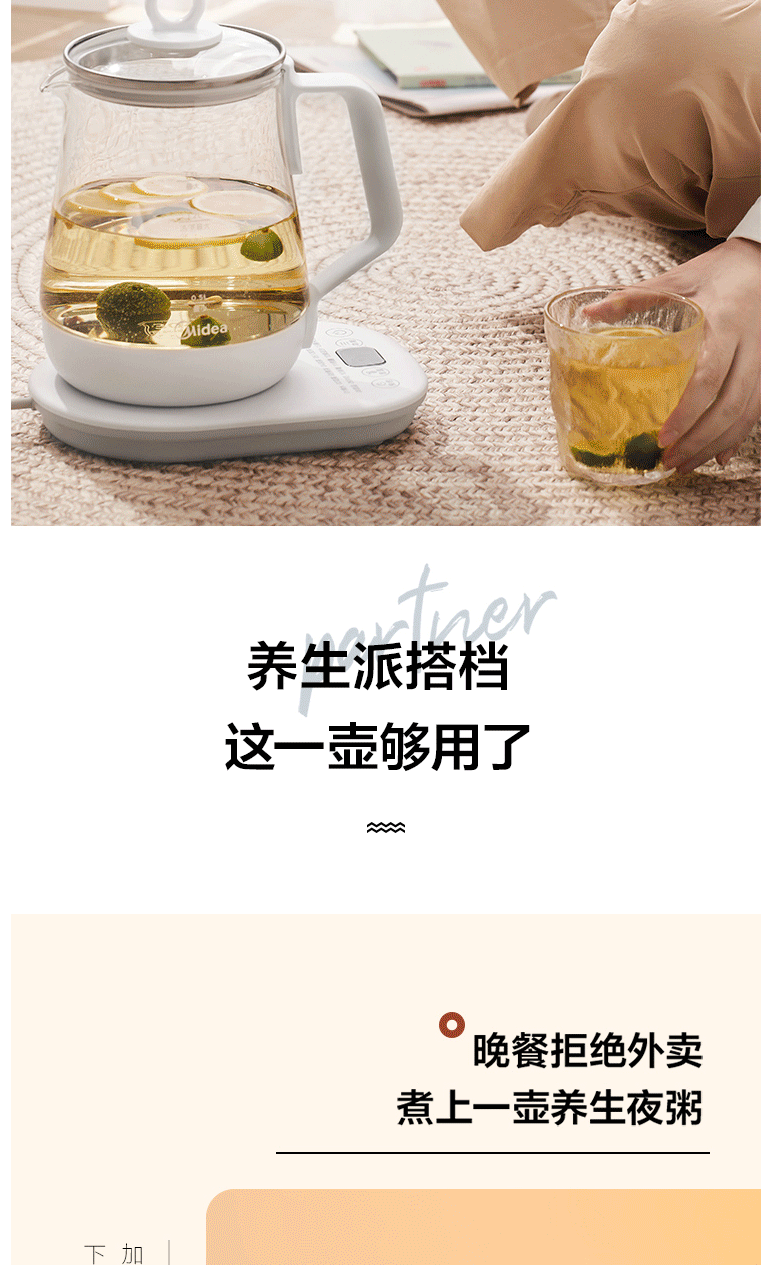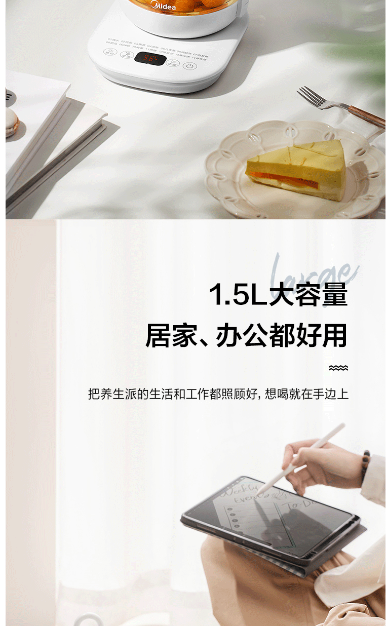美的(Midea)养生壶 1.5L 煮茶器煮茶壶 电水壶 智能预约养生壶 MK-Y12Q