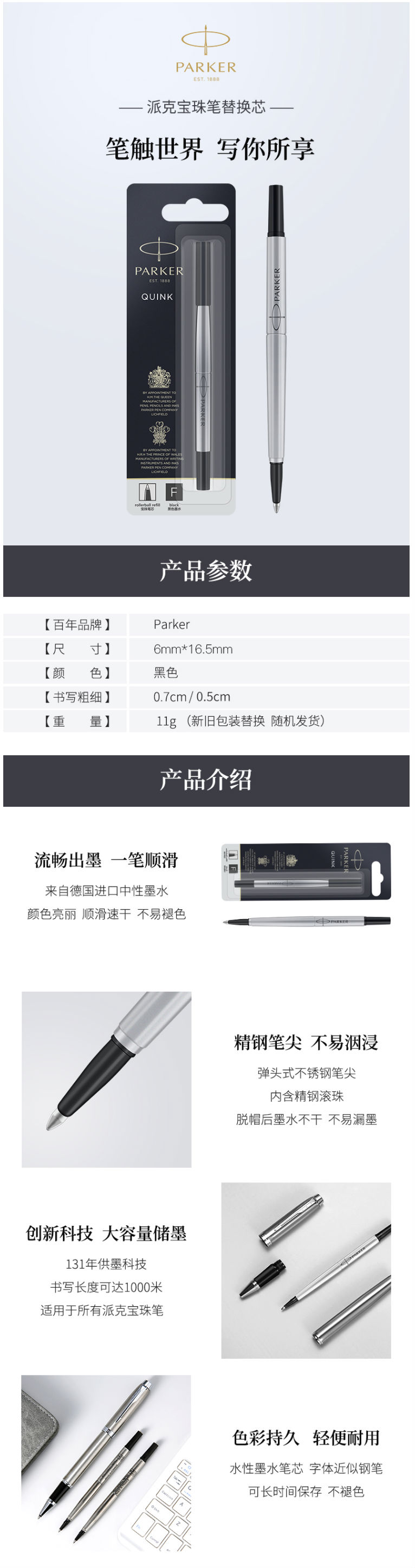 商品名称:派克(PARKER)签字笔宝珠笔芯 配件系列黑色0.5mm