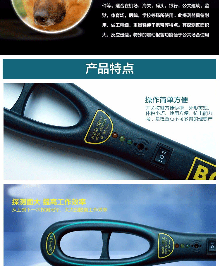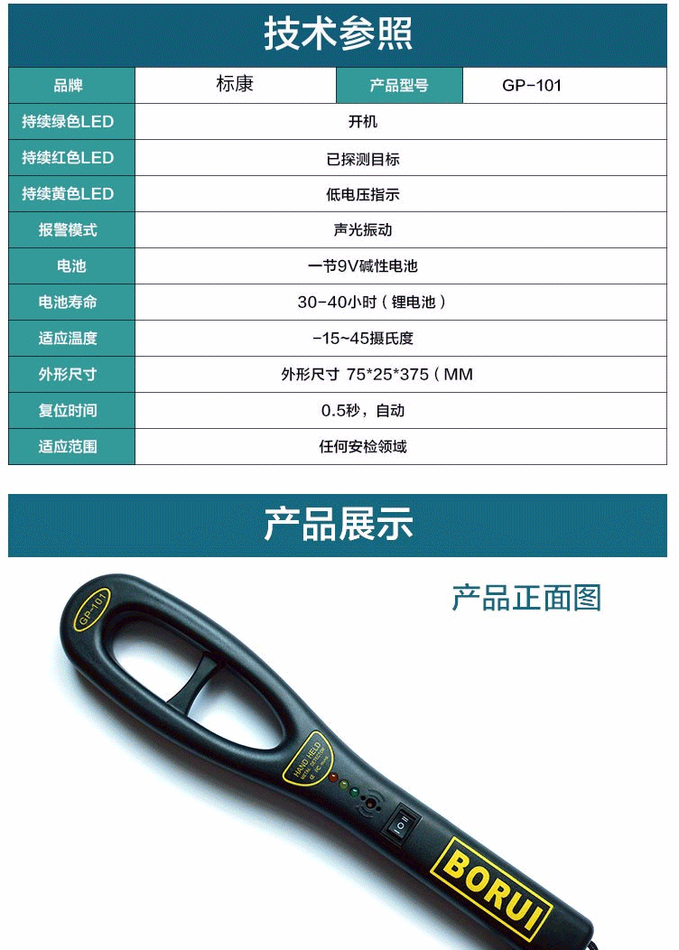 商品名称:标康 GP-101手持式金属探测器 专业级高灵敏度金属检测仪