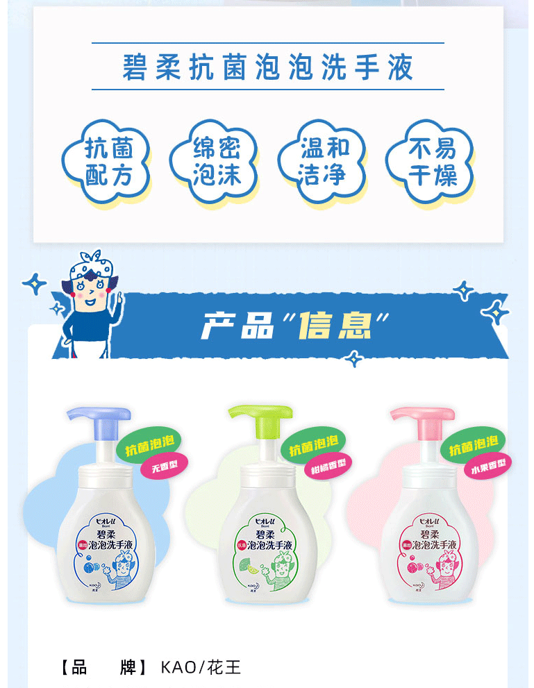商品名称:花王(KAO)弱酸性去污洗泡沫型洗手液 250ml/瓶 (混)