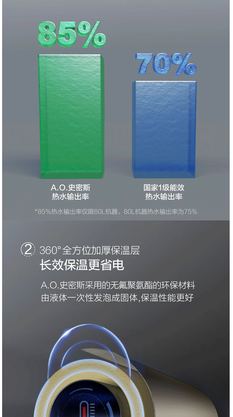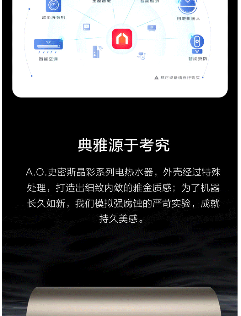 商品名称:史密斯80升电热水器 智能生态 晶彩设计 智能操控预约 双棒双3kW速热