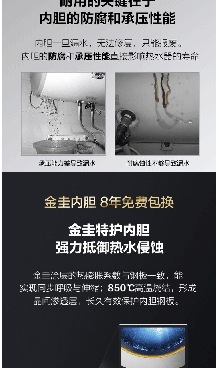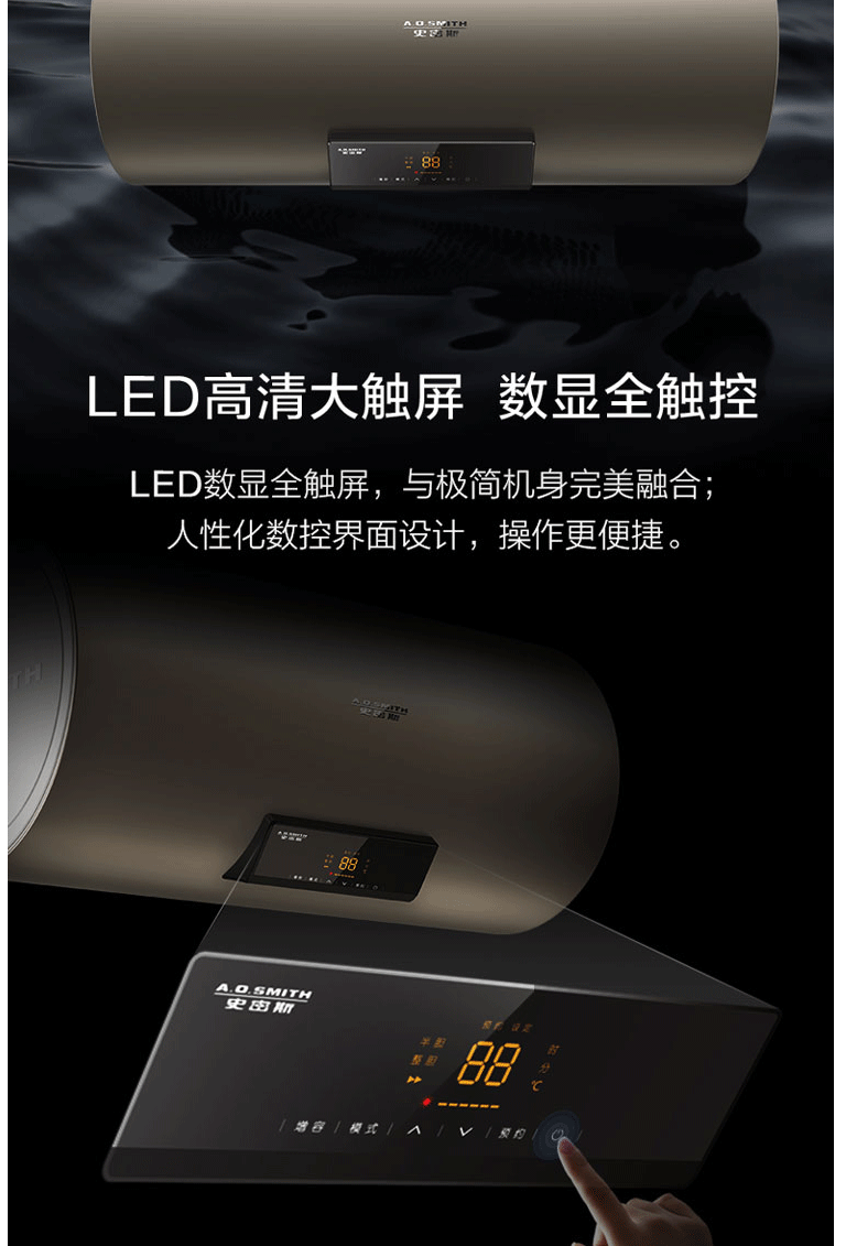 史密斯80升电热水器 智能生态 晶彩设计 智能操控预约 双棒双3kW速热