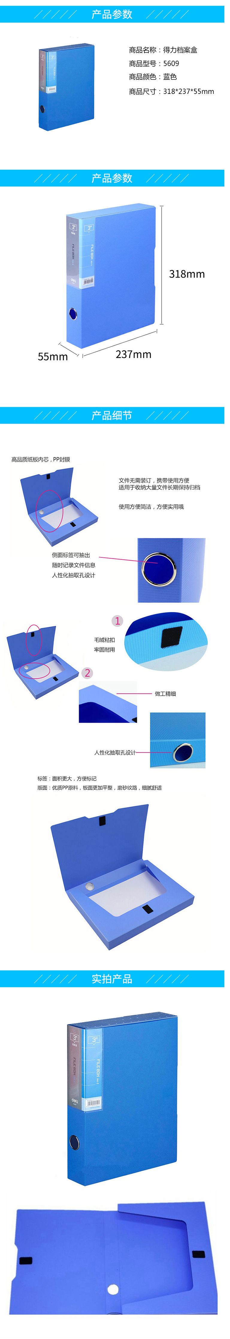 商品名称:得力(deli)A4档案盒背宽55mm 资料盒 文件盒 5609