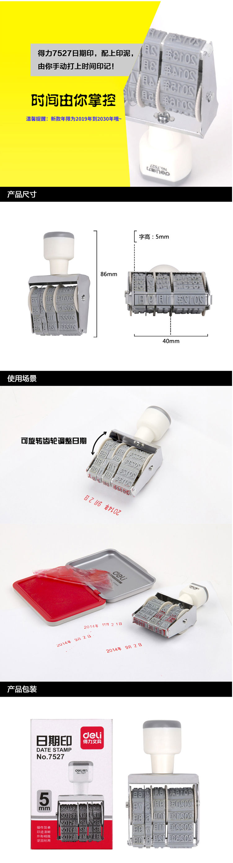 得力(deli)7527 日期印章 可调生产年月日数字印章 字高5mm
