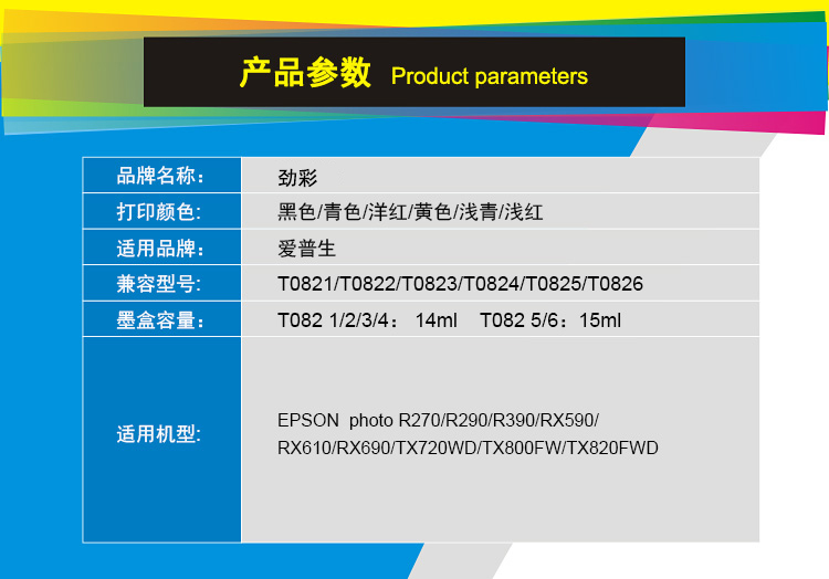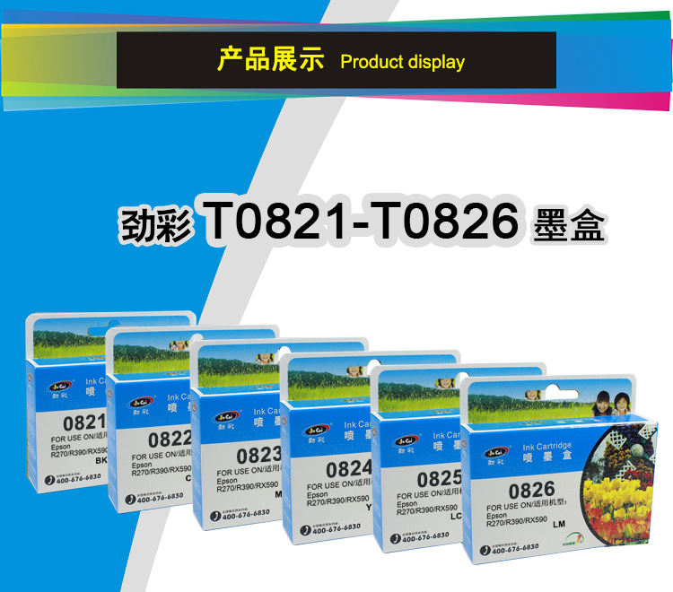 商品名称:劲彩 T0825墨盒 适用爱普生 R270 390 RX590 610 720 浅蓝