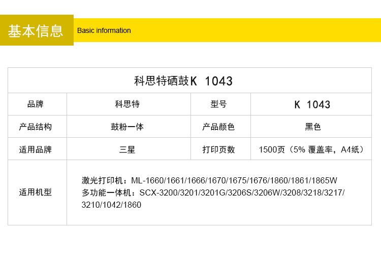 商品名称:科思特1043硒鼓 适用三星ML1042 1660 1670 1860 SCX-3201 专业版