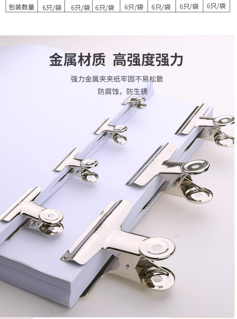 商品名称:力(deli)9526 圆形铁夹子 财务文件票据夹 金属票夹 19mm(6只/袋)
