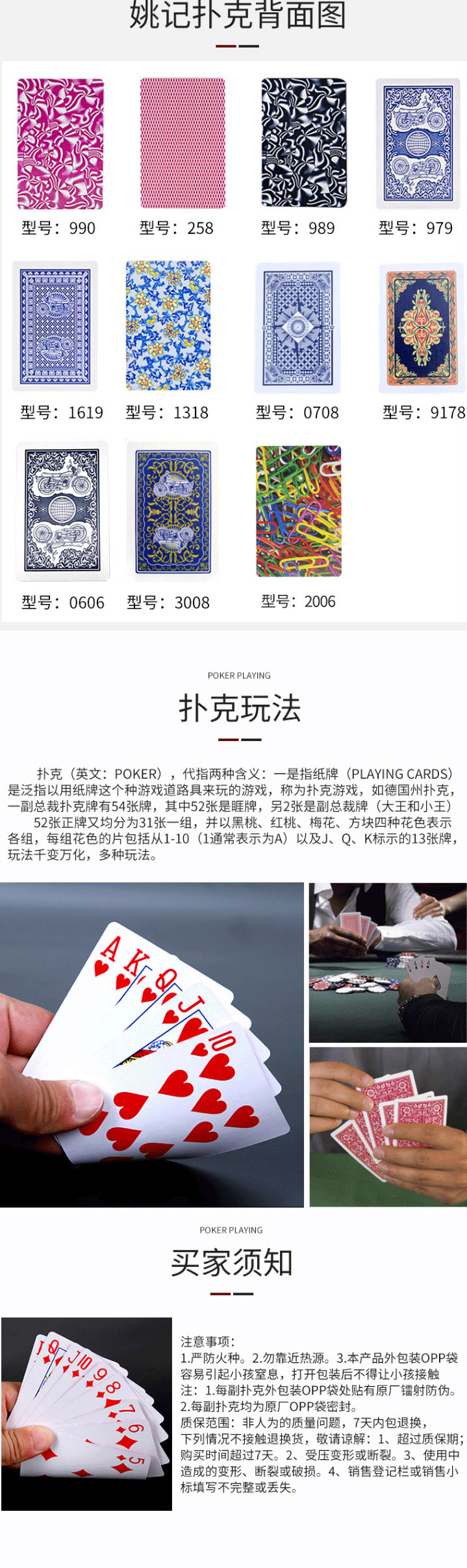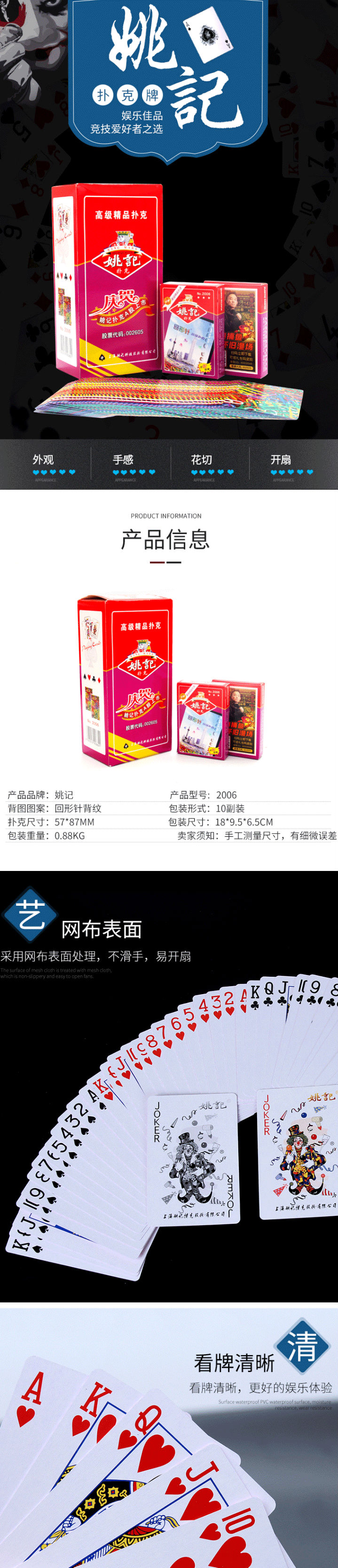 商品名称:姚记 扑克 扑克牌 耐打纸牌扑克 10盒装