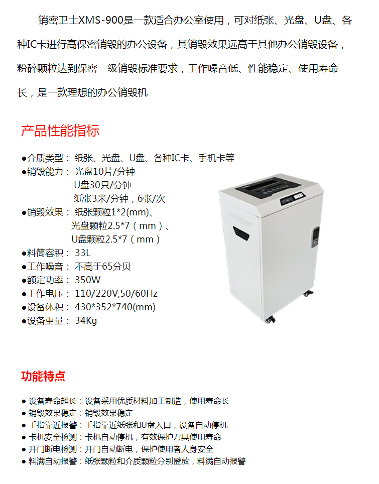 商品名称:和升达销密卫士XMS-900高保密办公销毁机(5合1型)