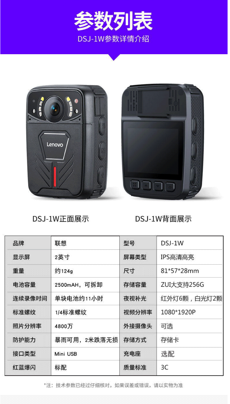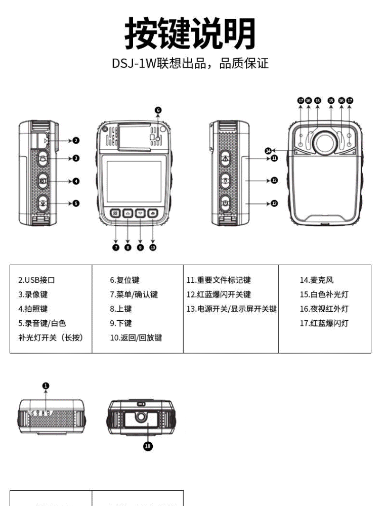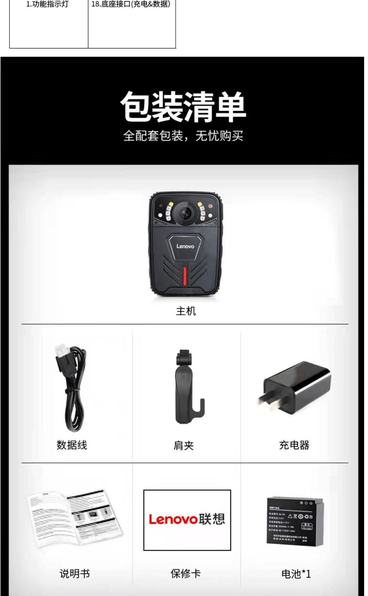 商品名称:联想(Lenovo)DSJ-1W执法记录仪高清 微型随身摄像内置32G 便携4800万像素11小时连续录像