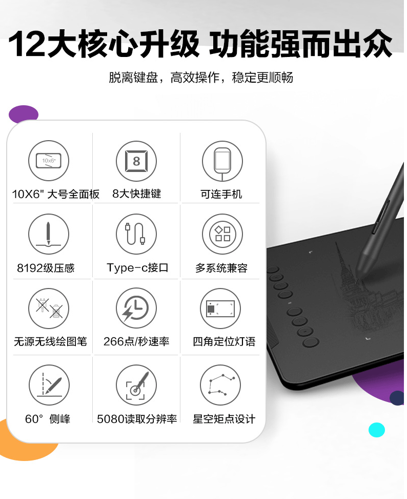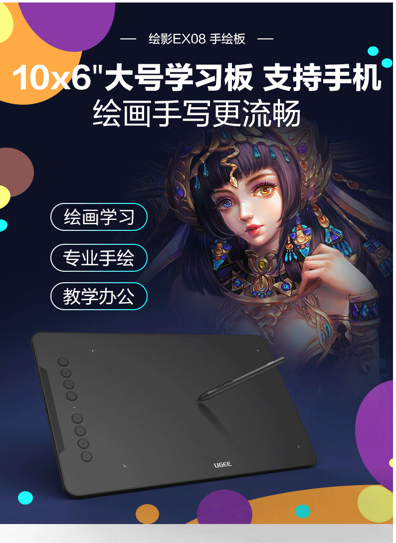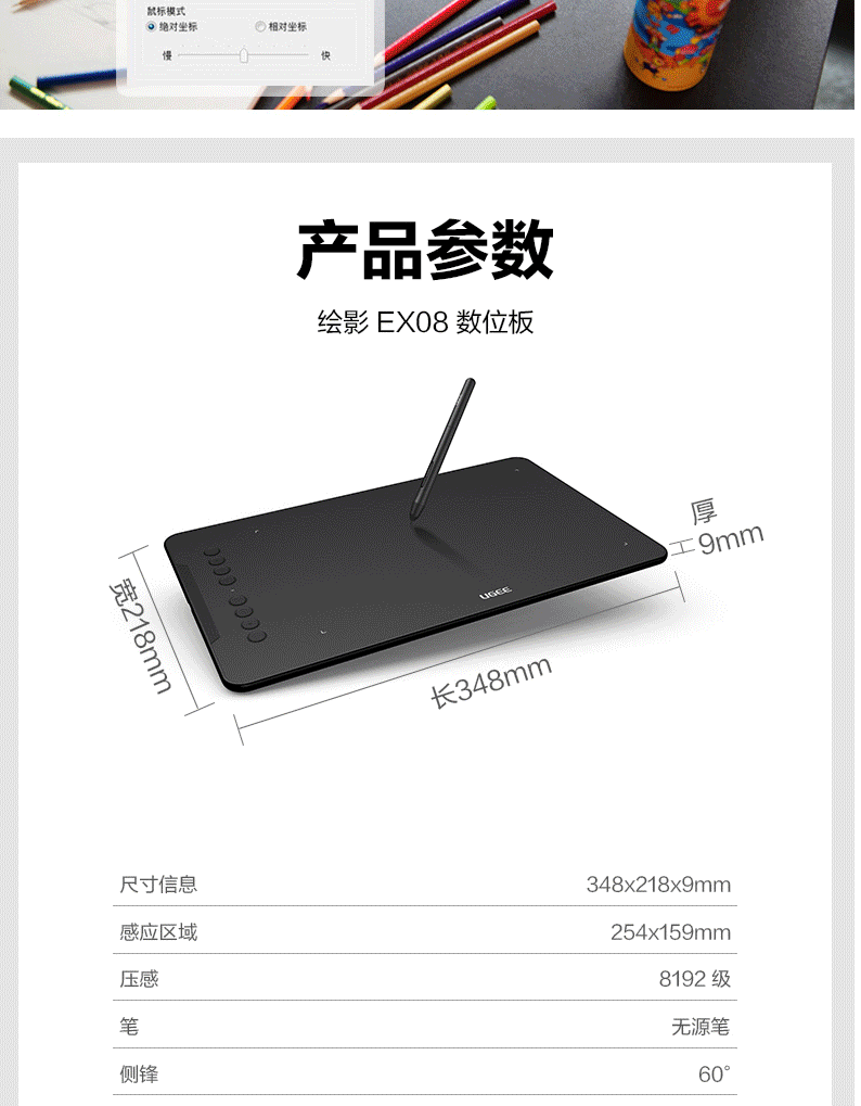 商品名称:友基(UGEE)数位板手绘板手写板画板手写板连电脑写字板网课手写板绘画板电子画板EX08标配升级版