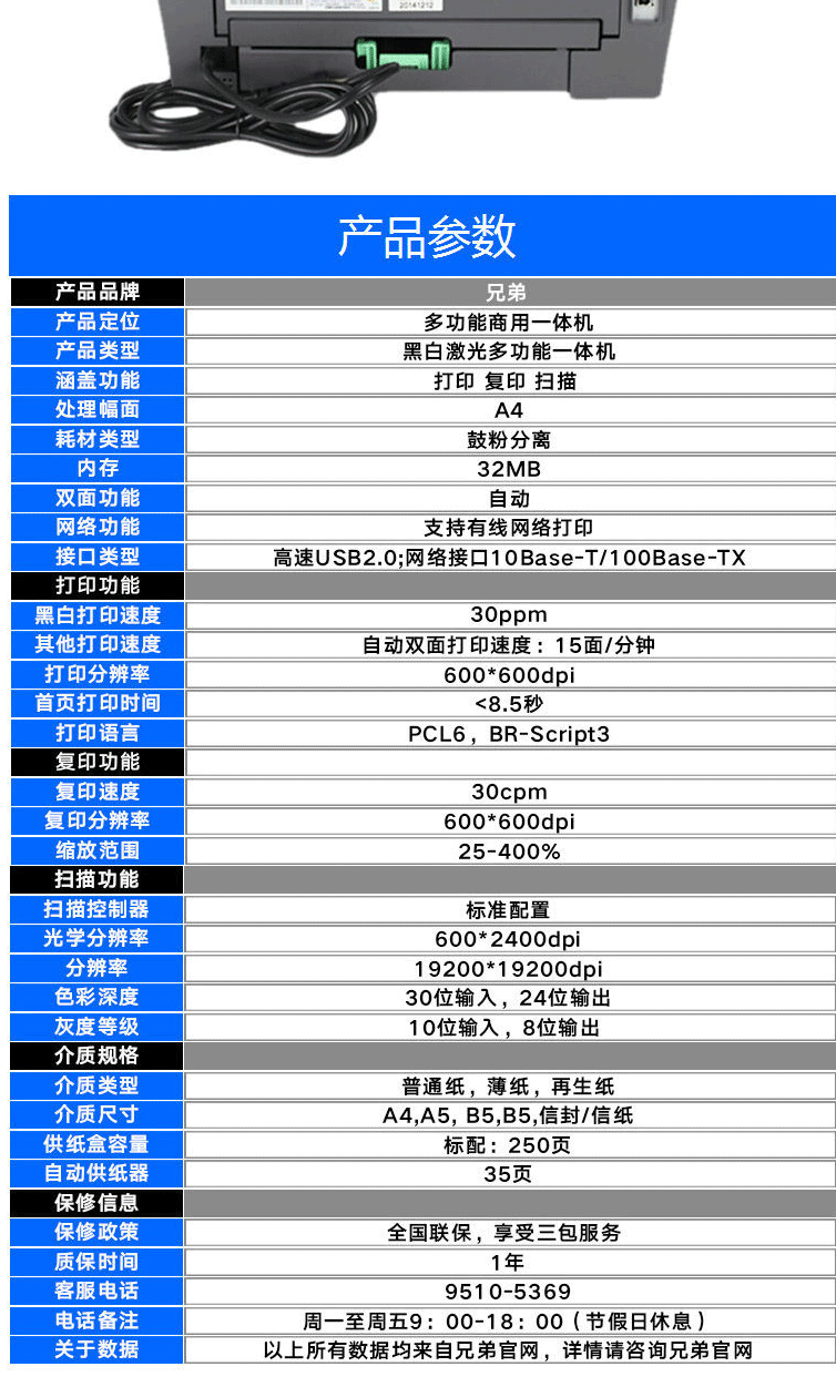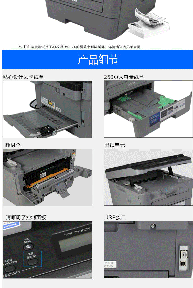 商品名称:兄弟7180DN 7080D黑白激光打印机办公家用 复印打印扫描一体机