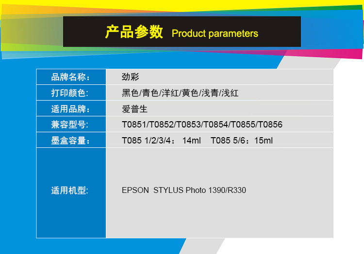 商品名称:劲彩 T0852墨盒 适用爱普生 R330 1390 蓝色