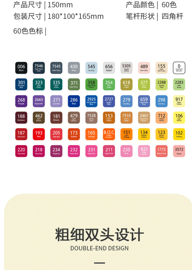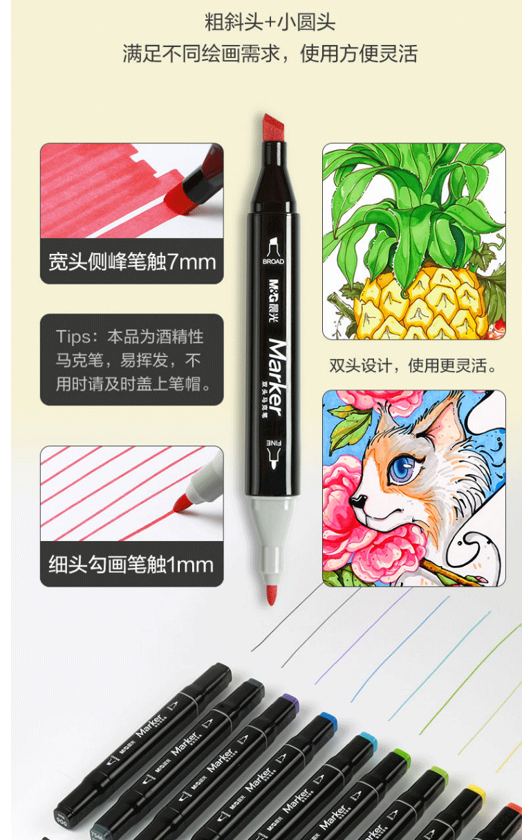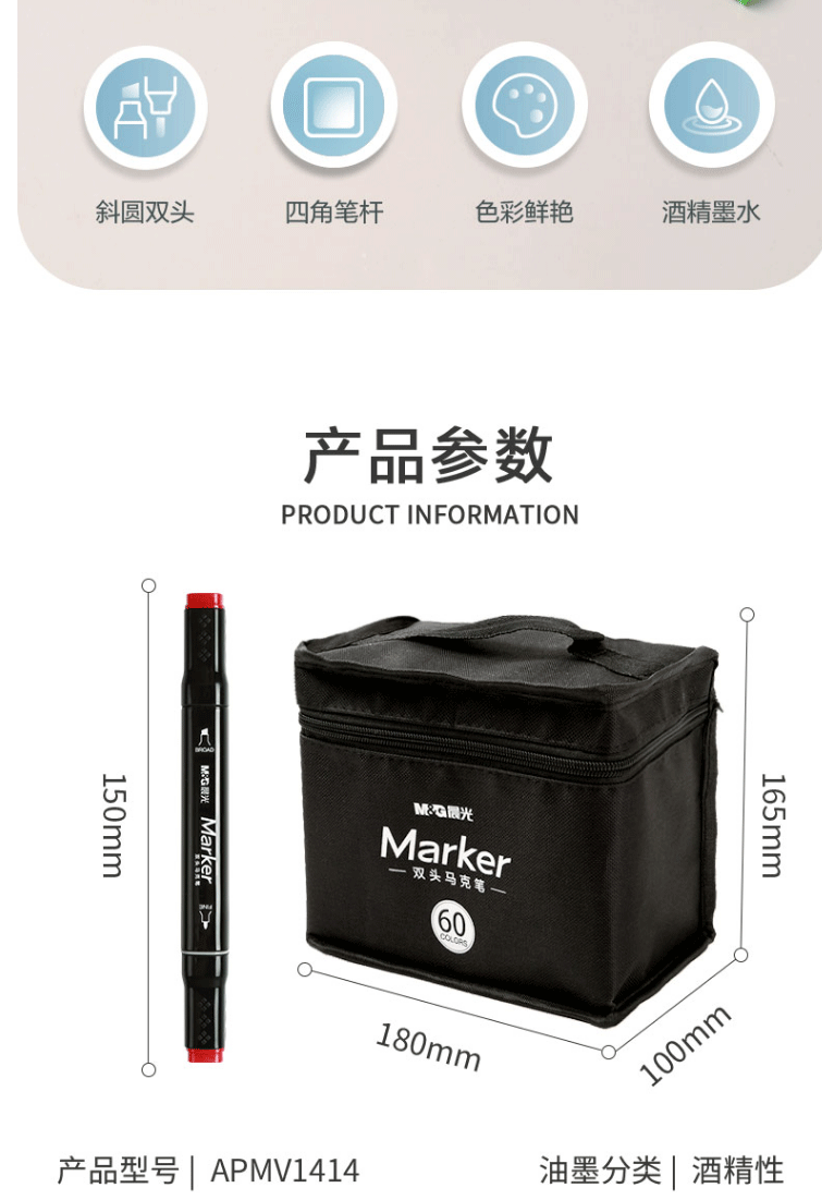 商品名称:晨光(M&G)文具60色双头酒精性速干马克笔 袋装 APMV1415