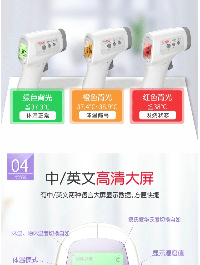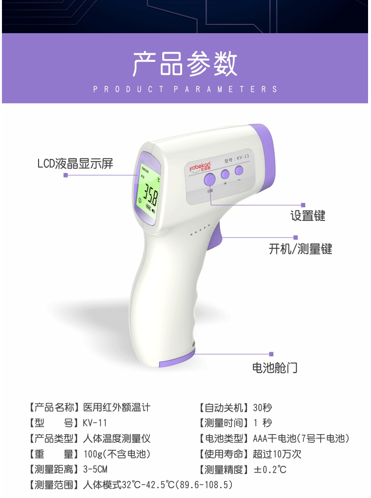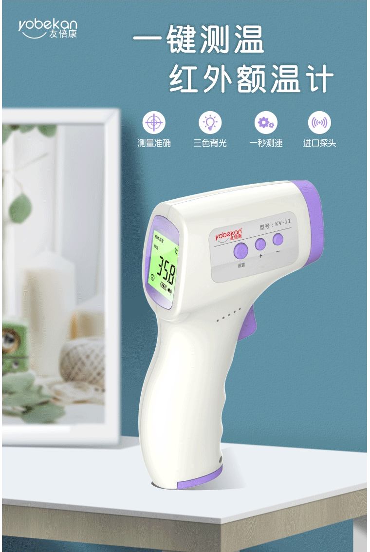 商品名称:友倍康 额温枪 额温计 体温计 kv-11 手持式体温枪红外非接触式