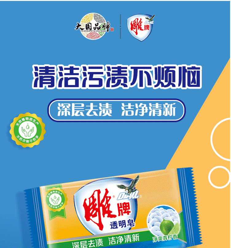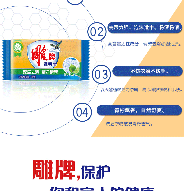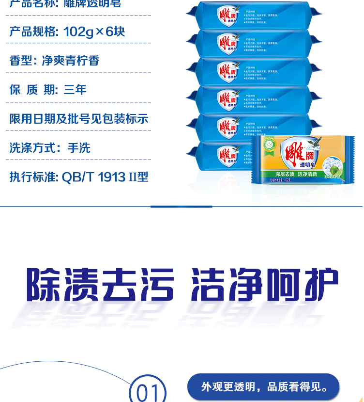 商品名称:雕牌青柠飘香透明皂/洗衣皂102g*6块装